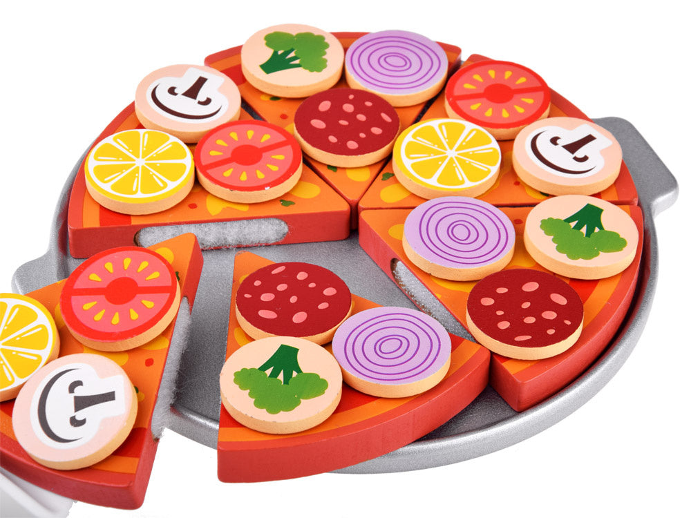 Nuostabus rinkinys kiekvienam mažajam virėjui ir šio itališko skanėsto mėgėjui. Rinkinyje yra viskas, ko reikia gardžiai picai paruošti ir patiekti. Mediniai elementai kruopščiai pagaminti, o įdomios spalvos skatina žaisti. Ant picos galima išdėlioti mėgstamus priedus, kurie pritvirtinami "Velcro" užtrauktukais. Šis žaislas idealiai tinka žaisti picerijoje, restorane arba pliušinių meškiukų ir lėlių vakarėlyje. Didelė pramoga garantuota! Rinkinys supakuotas spalvingoje, originalioje dėžutėje, idealiai tinkančioje dovanai.