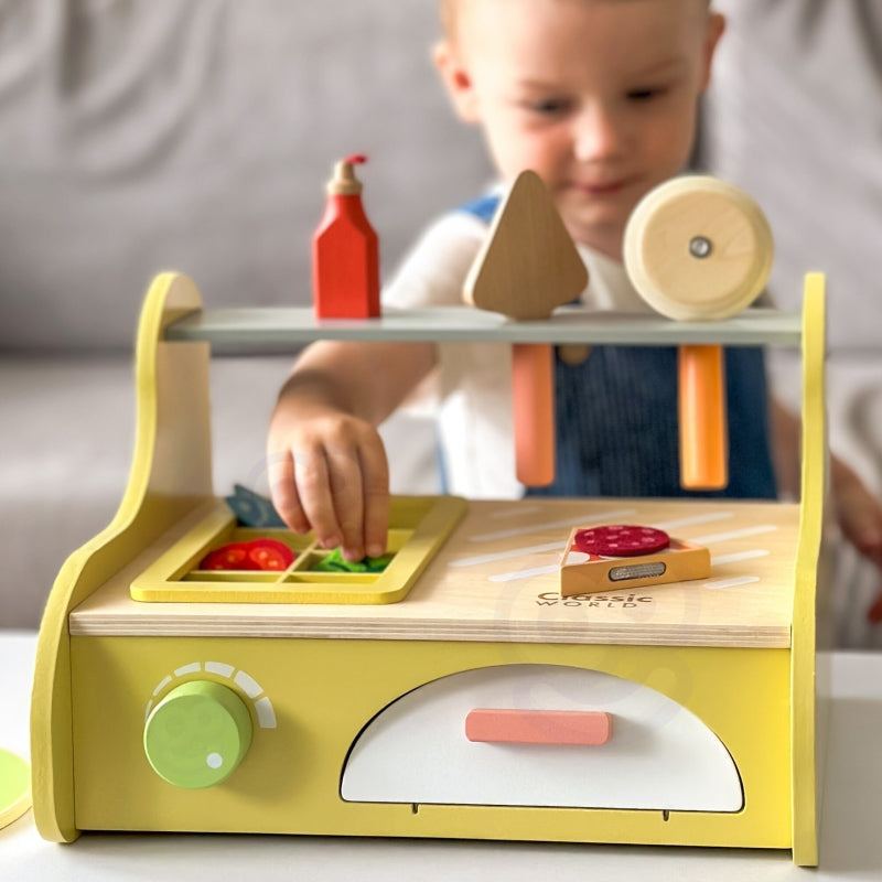 CLASSIC WORLD prekės ženklo medinė picų kepimo rinkinys - tai žaislas, kuriame kiekvienas mažasis virėjas turės viską, ko reikia norint paruošti vakarienę visai šeimai. Gražus žaislas vaidmeniniams žaidimams picos tema! Vaikai mokosi tinkamų maisto gaminimo būdų ir lavina smulkiąją motoriką. Tegul jaunesnysis picajolo sukuria savo pirmąją picą!