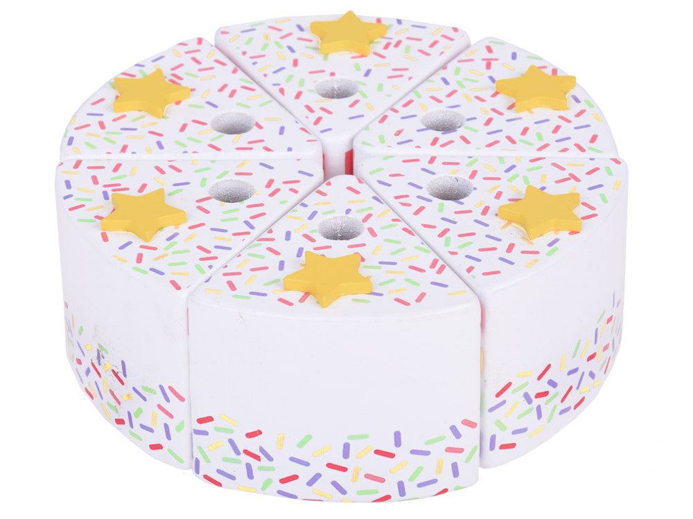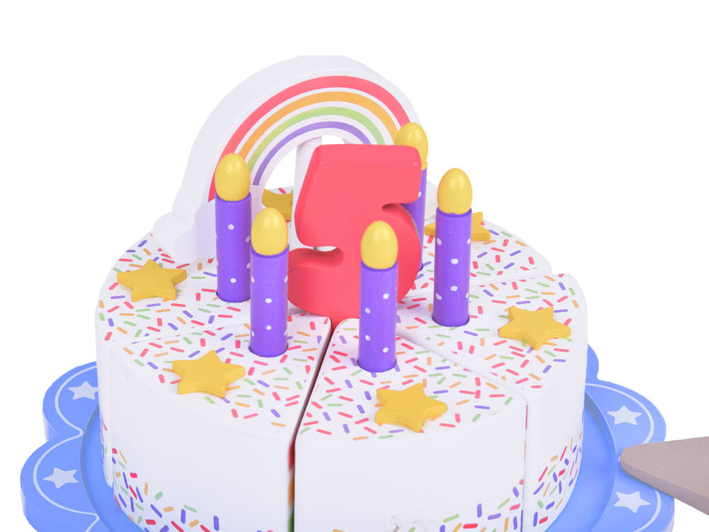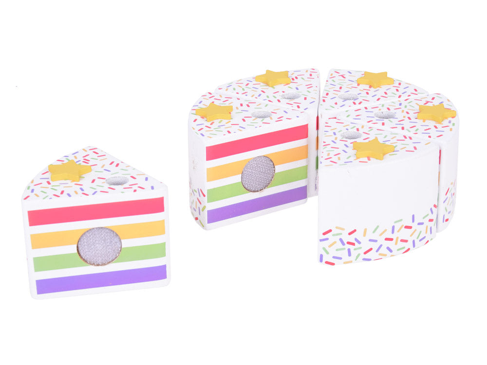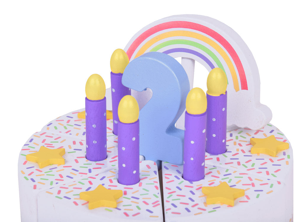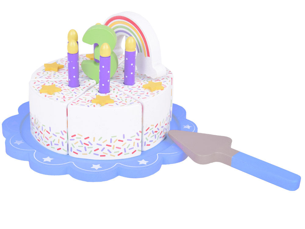 Šis fantastiškai pagamintas gimtadienio tortas puikiai tiks bet kokiam lėlių ir meškiukų vakarėliui! Spalvingas šešių dalių tortas yra puiki tikro torto imitacija, kurią vaikas gali pjaustyti, dalyti ir patiekti mentele. Torto viršus papuoštas nuimama spalvinga vaivorykšte, kuri suteikia visumai žavesio. Kiekviename torto gabalėlyje yra speciali vieta žvakei, todėl jis idealiai tinka žaisti per gimtadienio vakarėlius.
