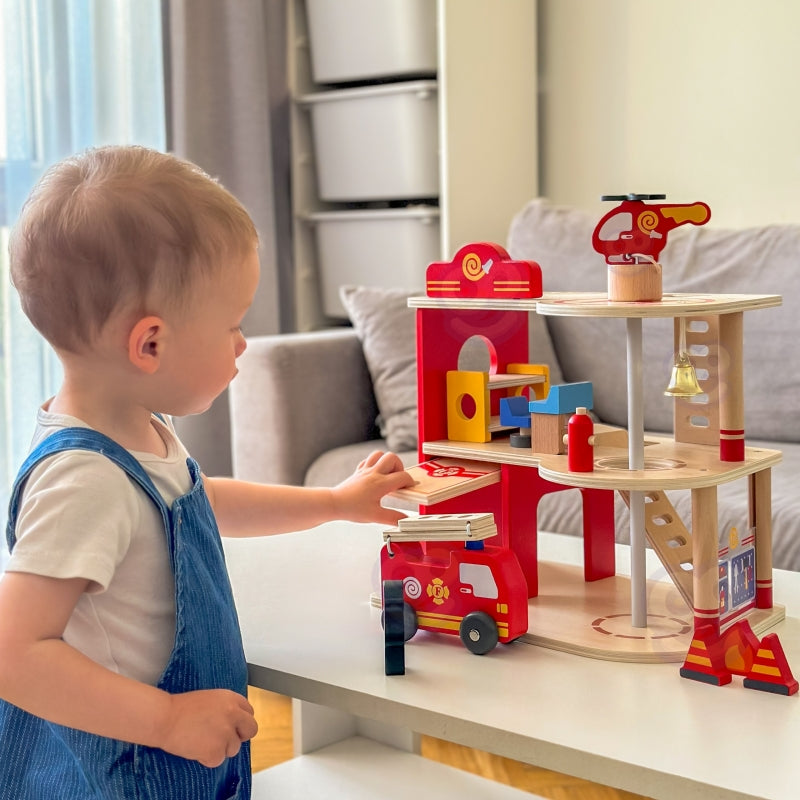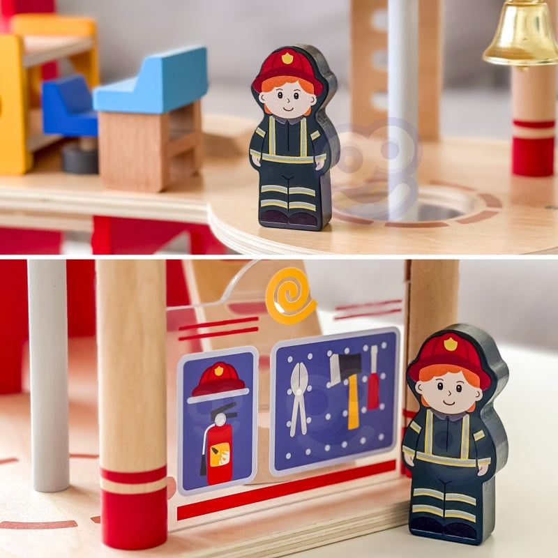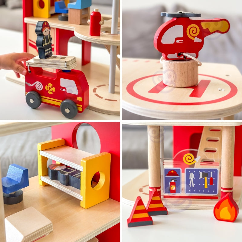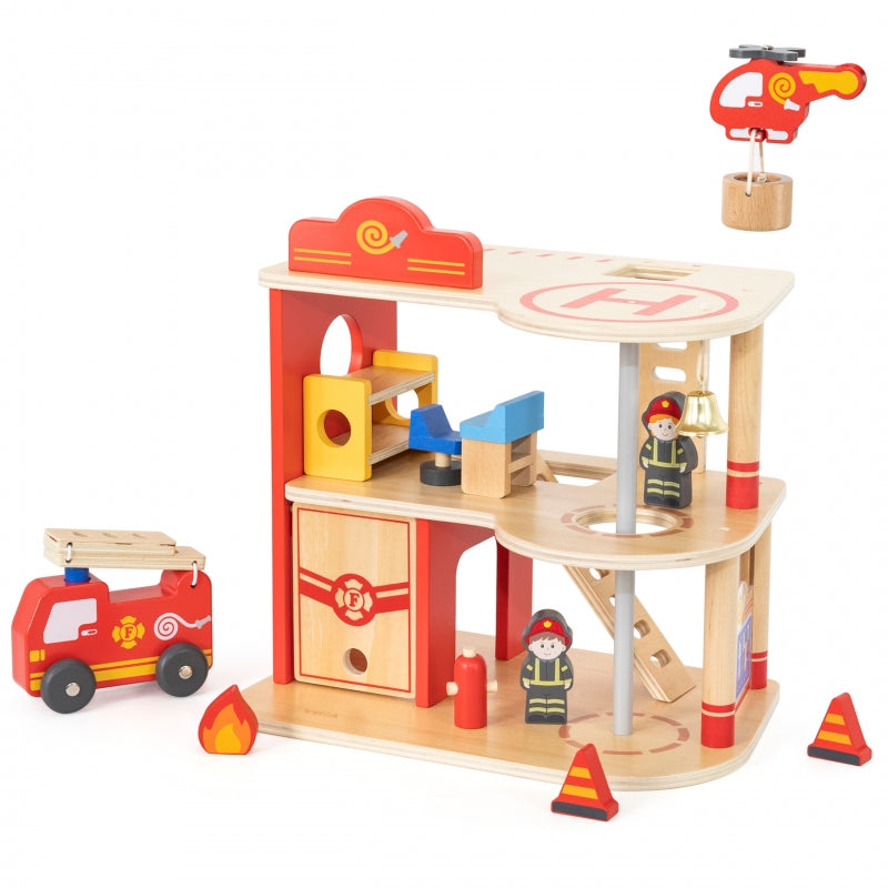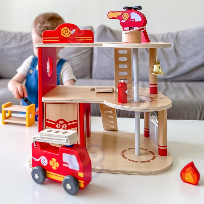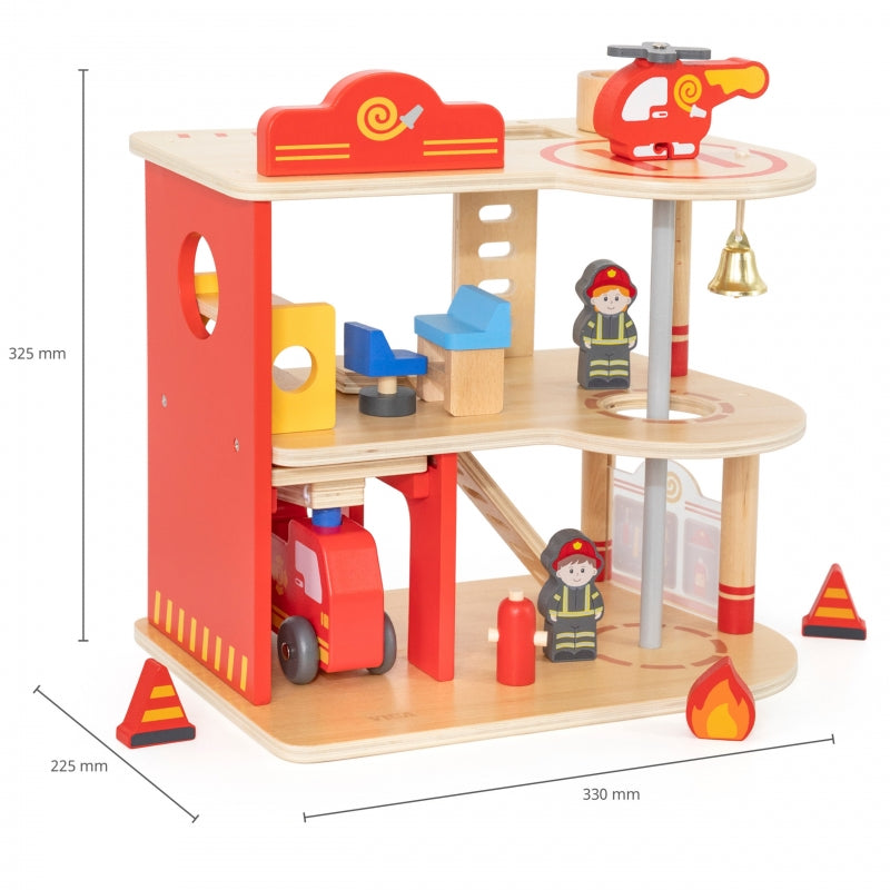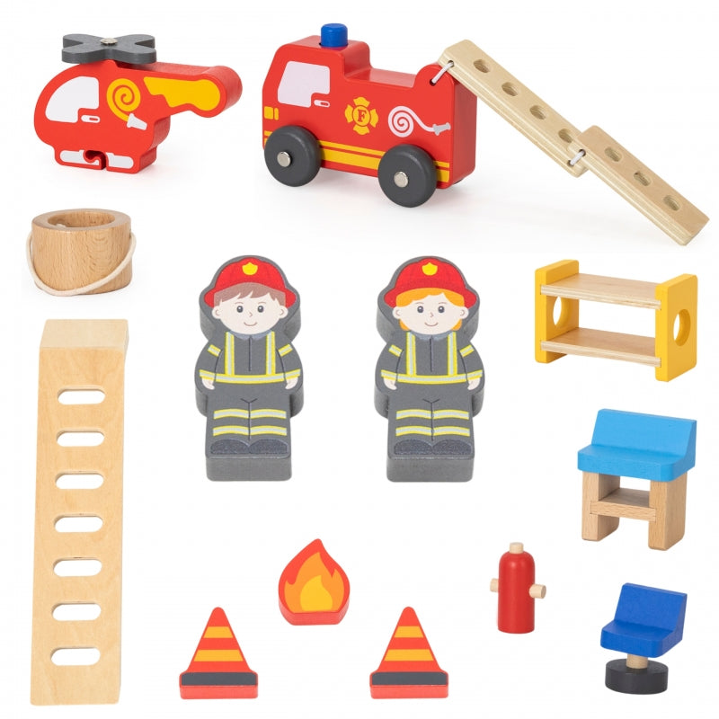 Medinis priešgaisrinės stoties rinkinys vaikams su figūrėlėmis 14 el., VIGA