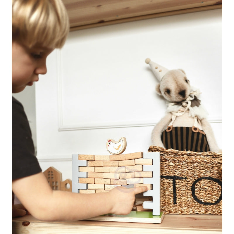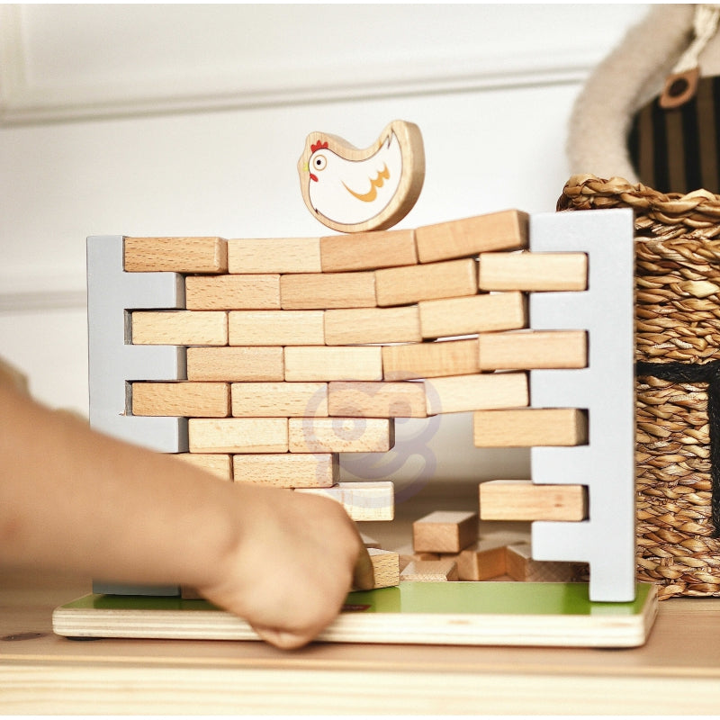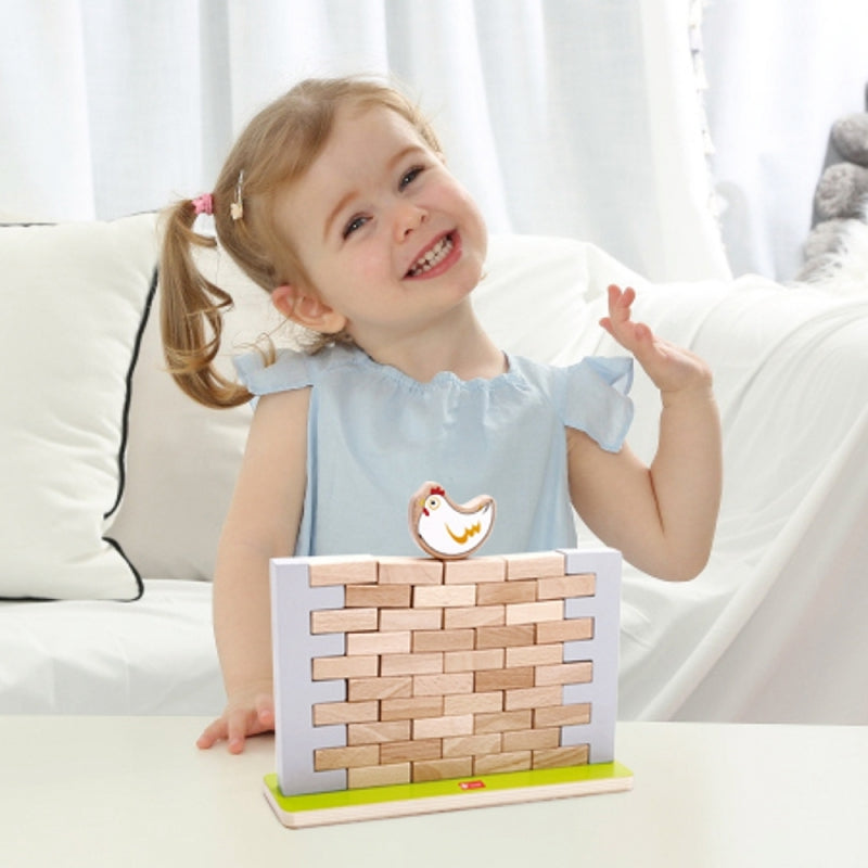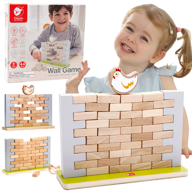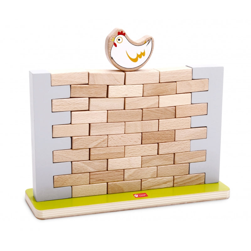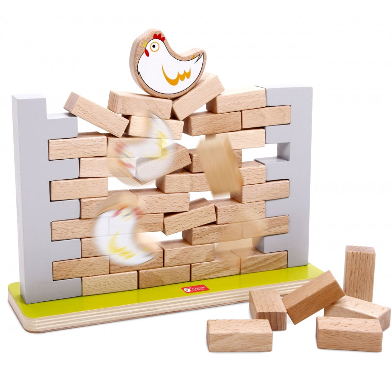 Puikus medinis žaidimas visai žinomo „Classic World“ prekės ženklo šeimai, paprastos taisyklės, logiškas mąstymas ir linksmybės įvairaus amžiaus žmonėms yra pagrindinės šio žaidimo savybės. Pastatykite sieną iš specialiai paruoštų blokų. Padėkite vištą aukštyn ir ištraukite plytas po vieną nuo sienos. Kai siena griūva, žaidimas baigiasi. Žaisdamas jūsų mažylis išmoks susikaupimo, strategijos ir problemų sprendimo, taip pat pagerins rankų ir akių koordinaciją.