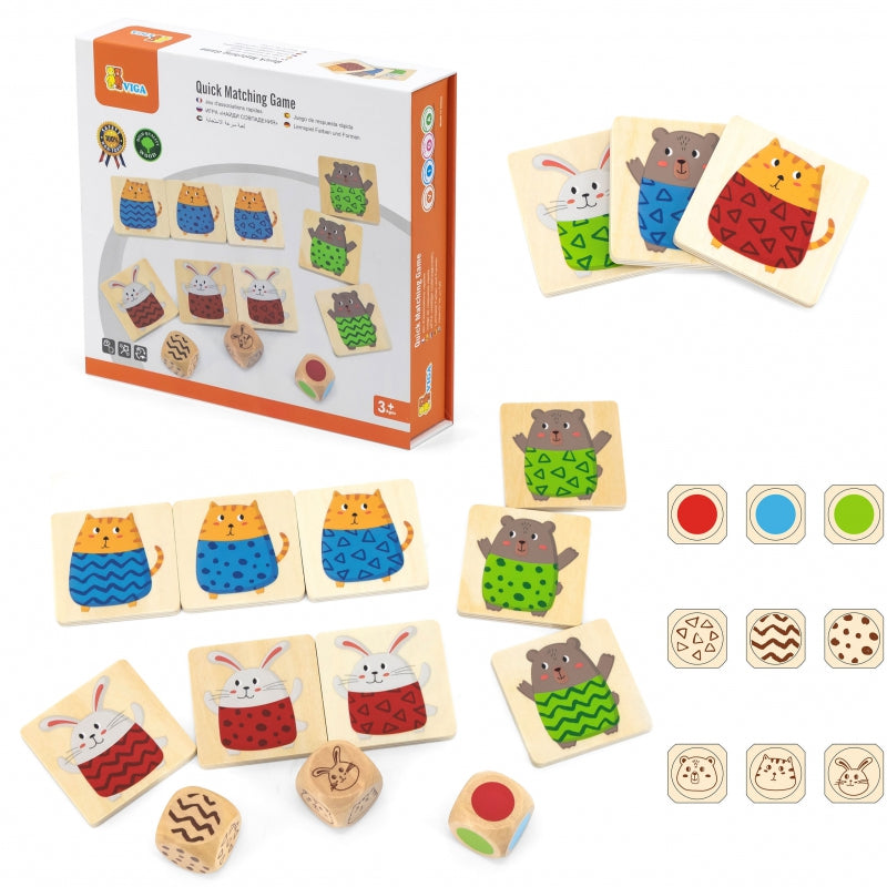 Medinis greitojo spėjimo žaidimas yra puikus vakarėlio žaidimas draugams ir šeimai. Vaiko užduotis mesti pasirinktą skaičių kauliukų (nuo 1 iki 3) ir surasti tinkamą gyvūną su tinkamais raštais ir tinkamos spalvos.