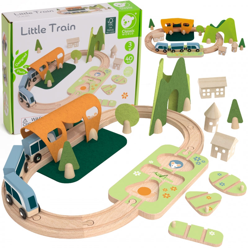 Medinis traukinio rinkinys 40 el, CLASSIC WORLD