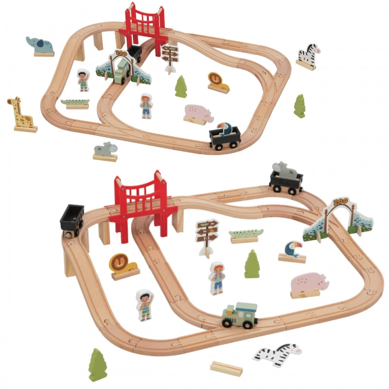 Medinis traukinio trasos rinkinys su priedais „Zoologijos sodas“ 60 el. WOOPIE GREEN