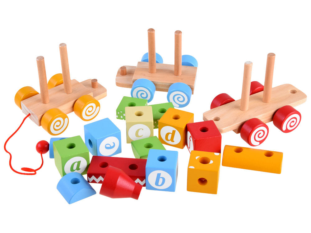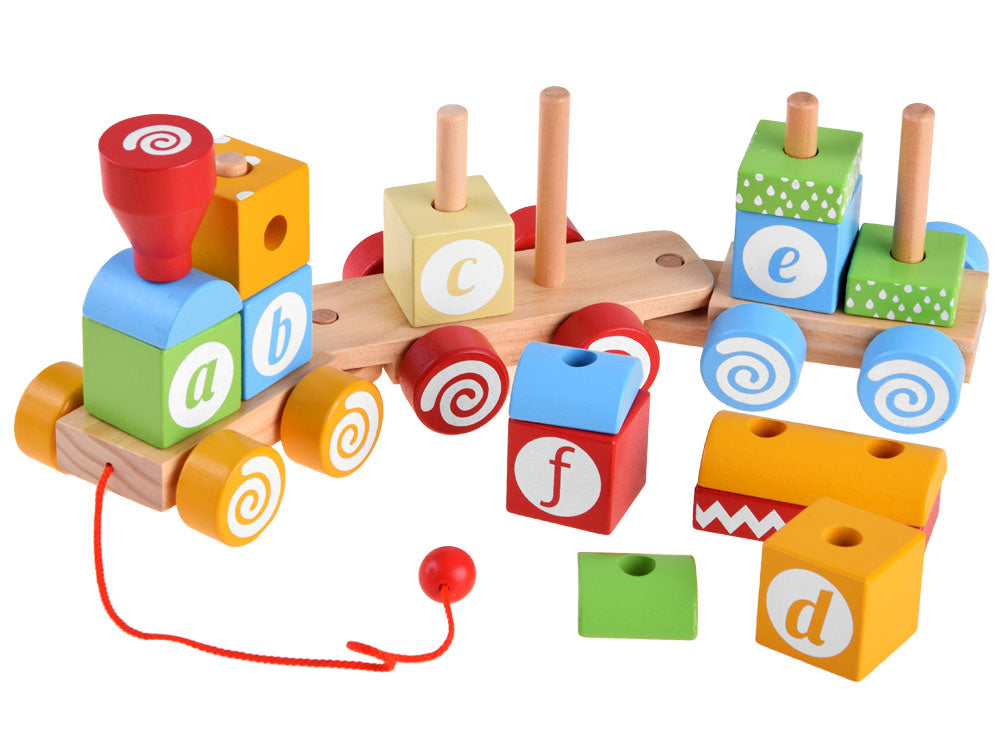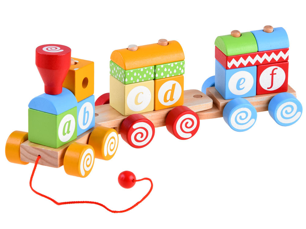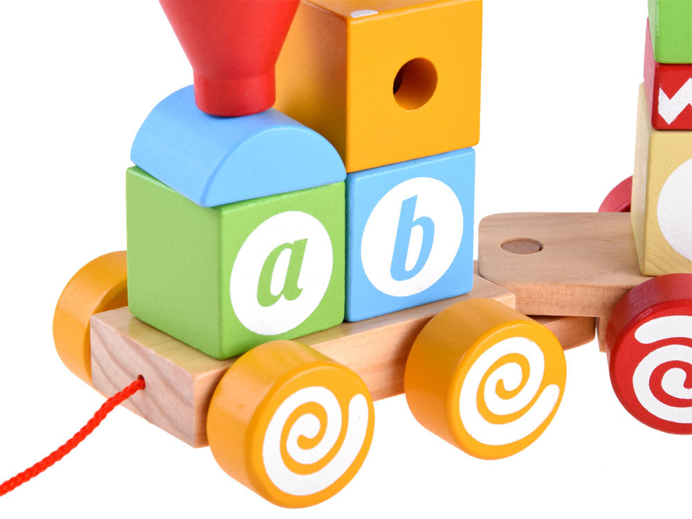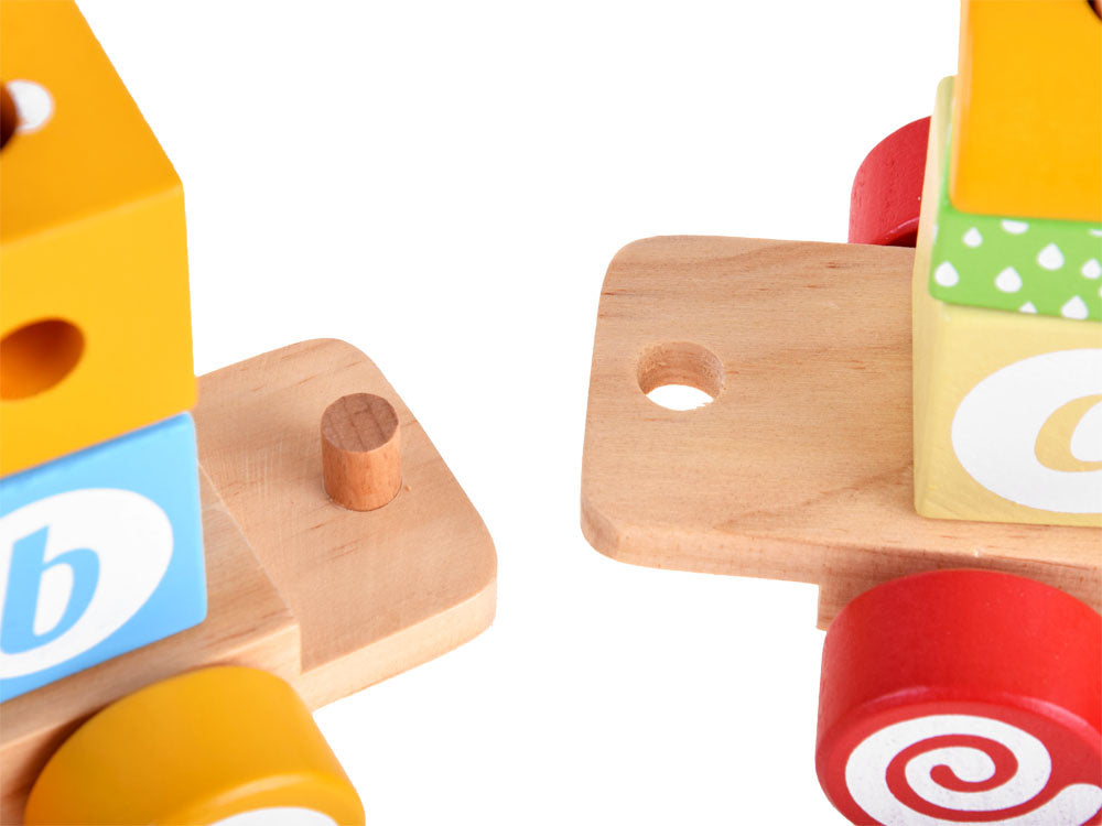 Žaislas pagamintas iš patrauklių spalvų, malonių vaiko akiai. Traukinio elementai yra nuimami, kurių dėka vaikas išmoks derinti formas, rikiuoti, statyti vagonus. Kiekvienoje kaladėlėje yra raidė, tad vaikas galės mokytis pirmųjų raidžių.