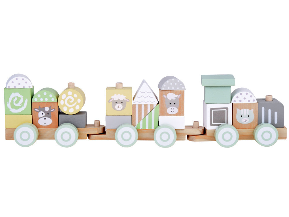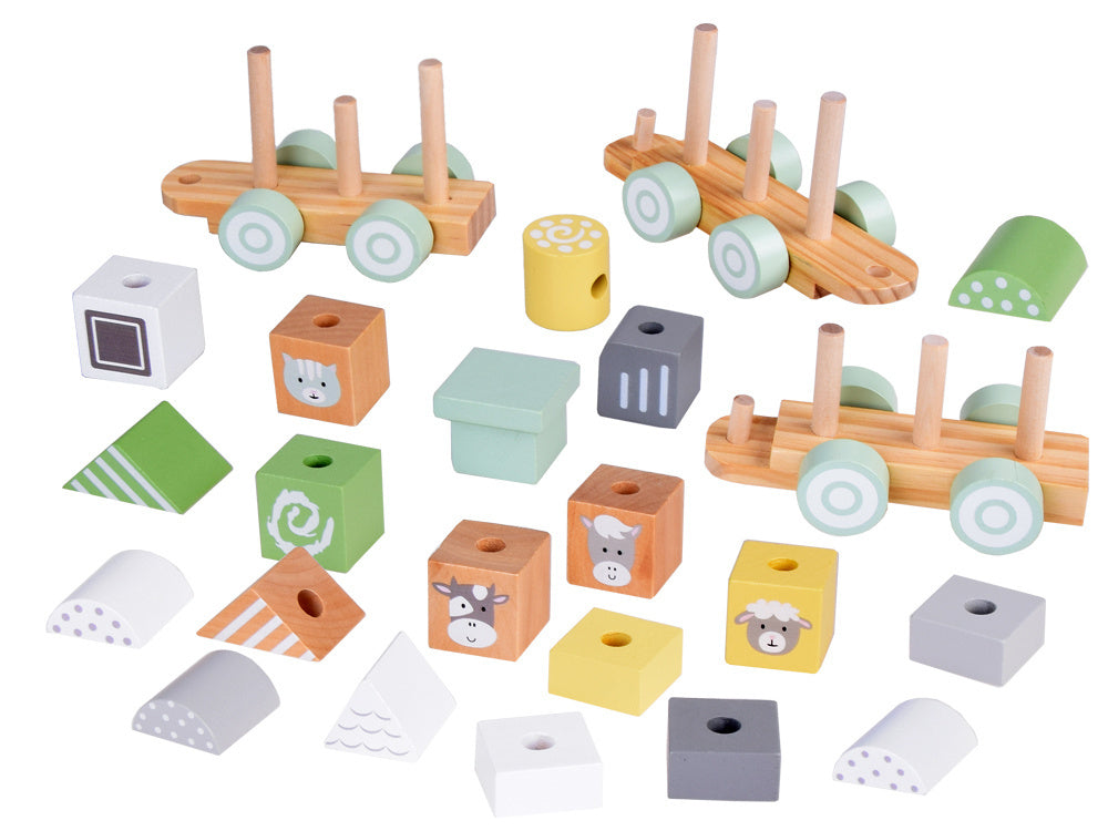 Medinis traukinys su vagonais ir kaladėlėmis 23 el.