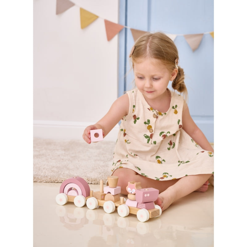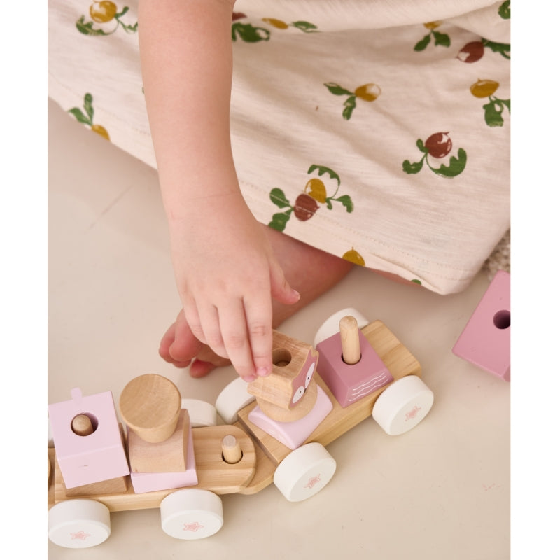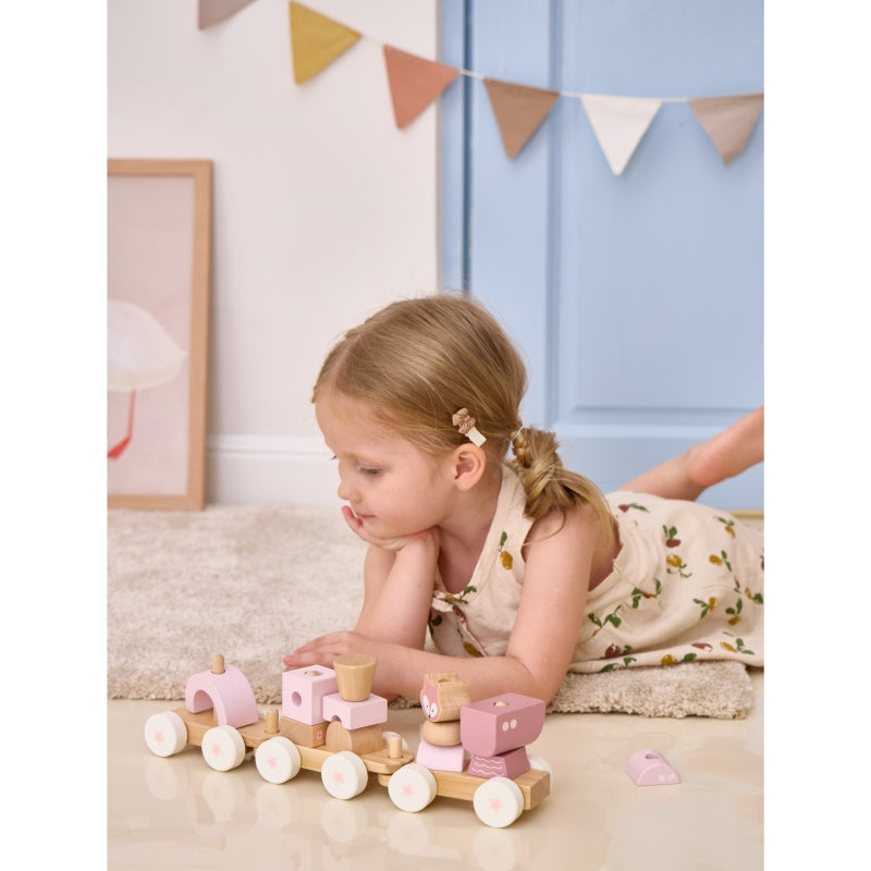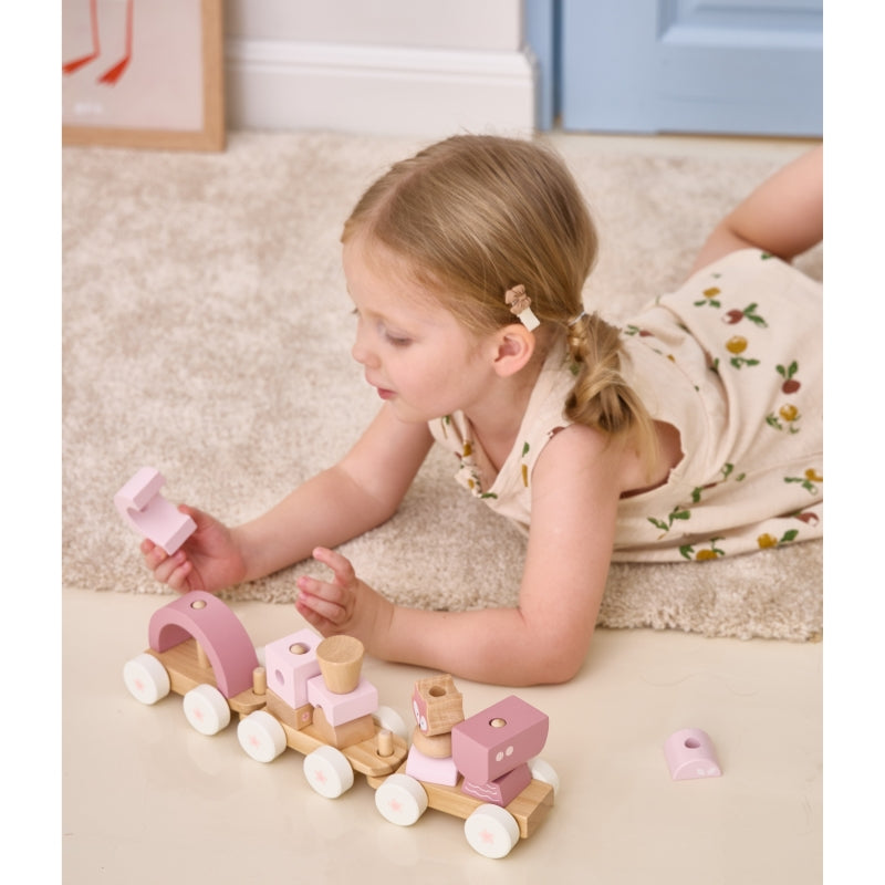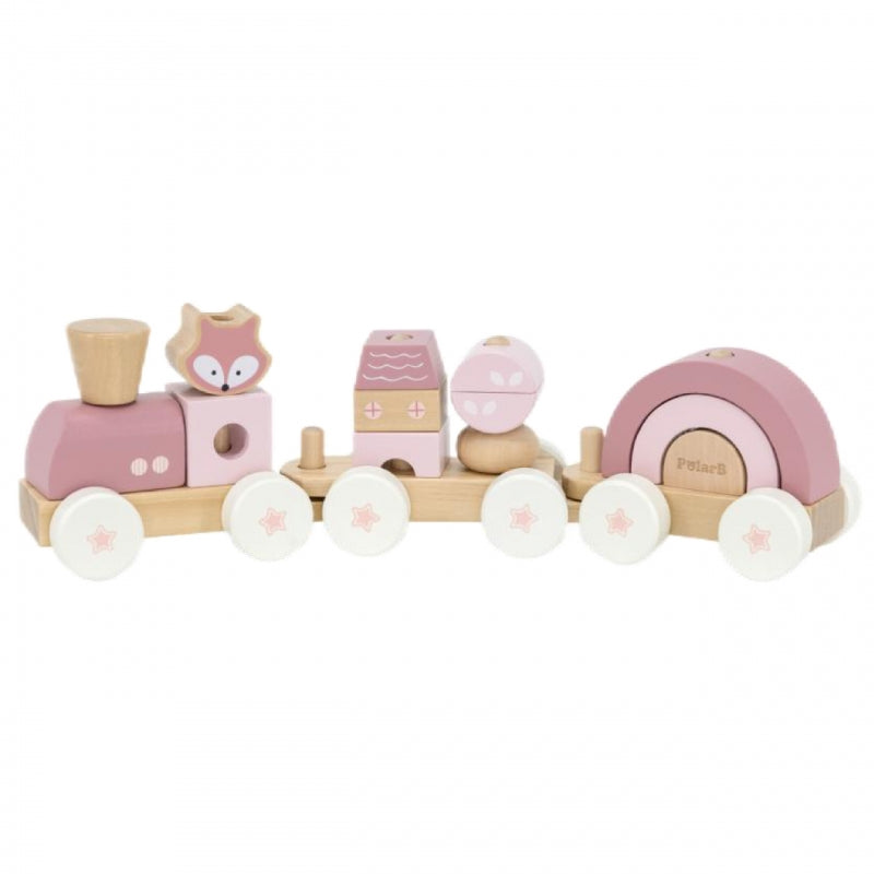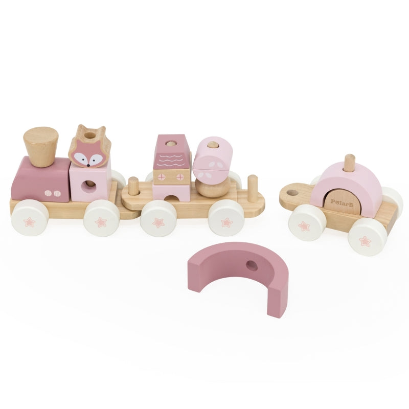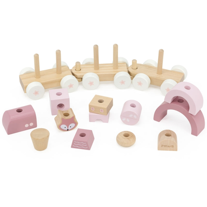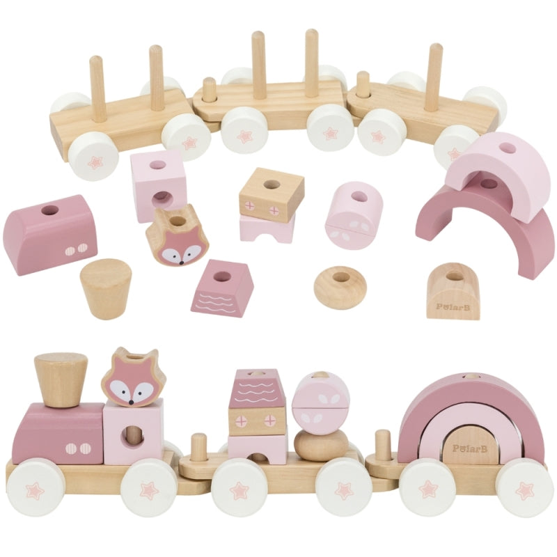 Medinis traukinys su vagonais ir kaladėlėmis, rožinis, VIGA PolarB