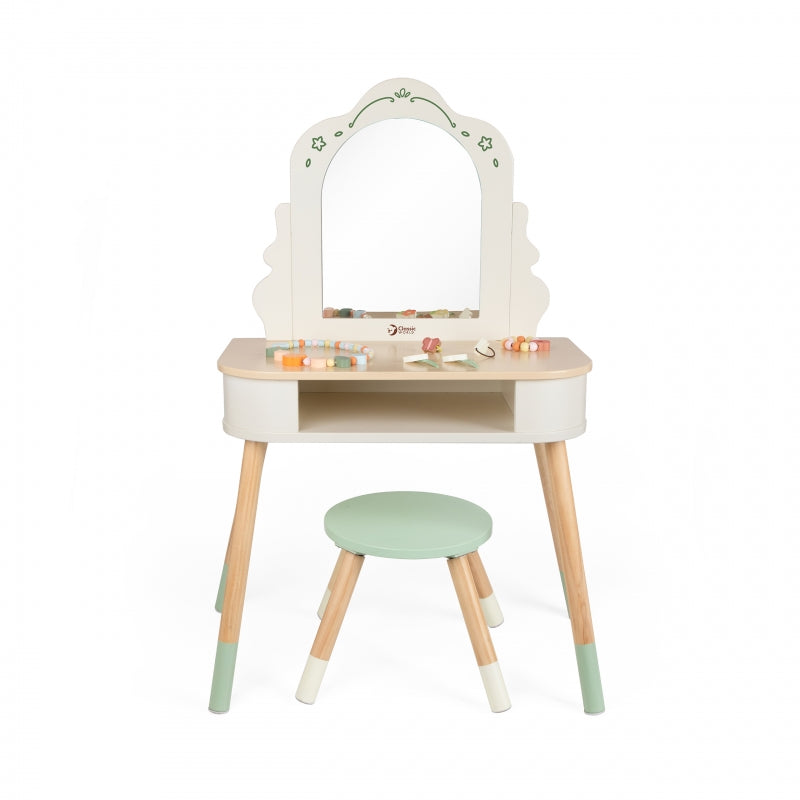 Classic World tualetinis staliukas su veidrodžiu sukurtas specialiai vaikams, kurie svajoja turėti savo kampelį, kuriame galėtų žaisti su kosmetika ir mėgautis persirengimu. Komplektą sudaro apvali kėdutė, veidrodis ir įvairūs aksesuarai, tokie kaip apyrankė, plaukų segtukai ir kaklo grandinėlė. Su šiuo tualetiniu staliuku vaikai gali ugdyti vaizduotę, imituoti suaugusiųjų elgesį ir žaisdami lavinti rankų judesius.