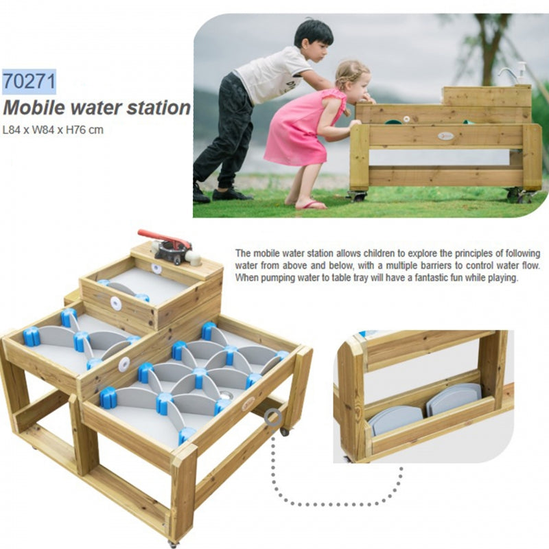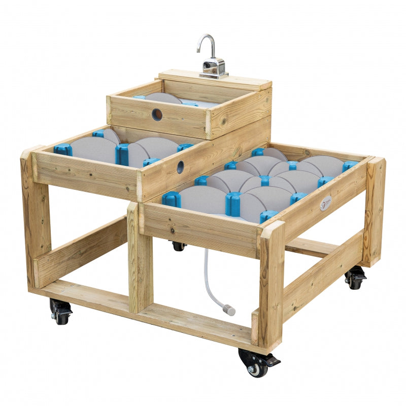 CLASSIC WORLD prekės ženklo mobilusis vandens stalas leidžia vaikams susipažinti su vandens plaukimo principais iš viršaus žemyn su keliomis vandens srautą kontroliuojančiomis užtvaromis. Vaikai gali leisti vandenį per čiaupą ir stebėti, kaip vanduo teka. Ikimokyklinio amžiaus vaikams patinka eksperimentuoti su vandeniu ir stebėti, kaip jis elgiasi įvairiomis sąlygomis.