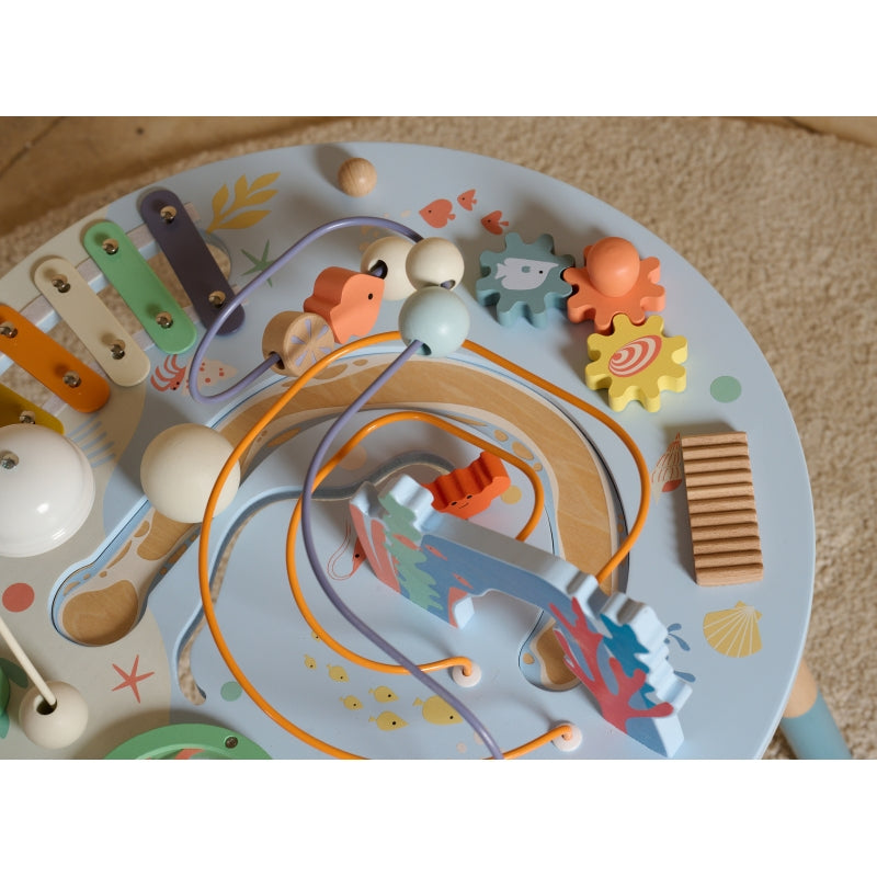 Medinis veiklos stalas iš „Classic World“ yra puikus žaislas smalsiems vaikams! Spalvingoje lentelėje yra daugybė spalvingų užduočių, pavyzdžiui, motorinė kilpa, krumpliaračiai, metalofonas ir būgnas, todėl ji suteiks daug džiaugsmo ir kartu padės ugdyti tokius svarbius įgūdžius kaip rankų miklumas, loginis mąstymas ir vikrumas. Stalas skatina vaikus žaisti stovint ir yra puiki įžanga į formų ir spalvų pasaulį. Pagamintas iš medžio ir , jis visiškai pritaikytas vaikams.