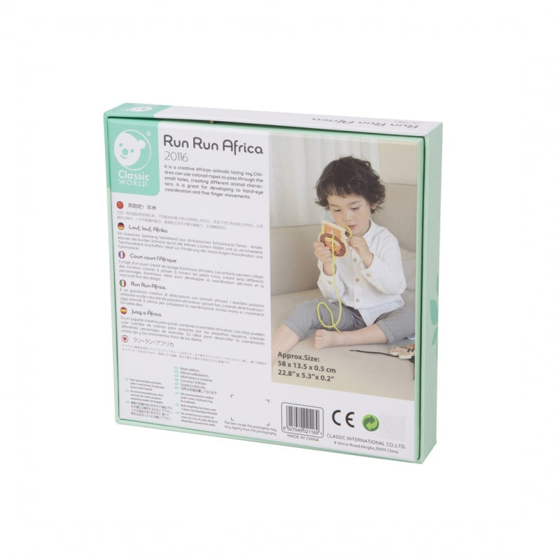 CLASSIC WORLD medinis vėrimo žaidimas yra puiki medinė mokymo priemonė. Jos dėka jūsų vaikas išmoks naudotis virvele. Žaisdamas jis pamatys, kaip tai lengva ir malonu. Papildoma virvelės užduotis - rankų ir regos įgūdžių lavinimas.