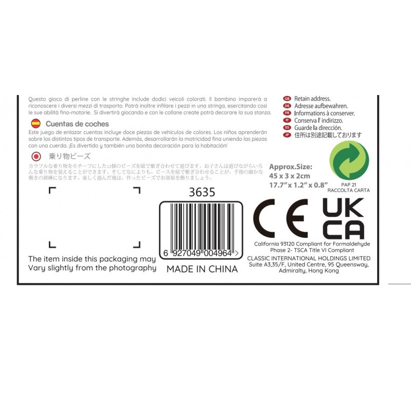 Medinis vėrimo žaidimas 13 el, transporto priemonės, CLASSIC WORLD