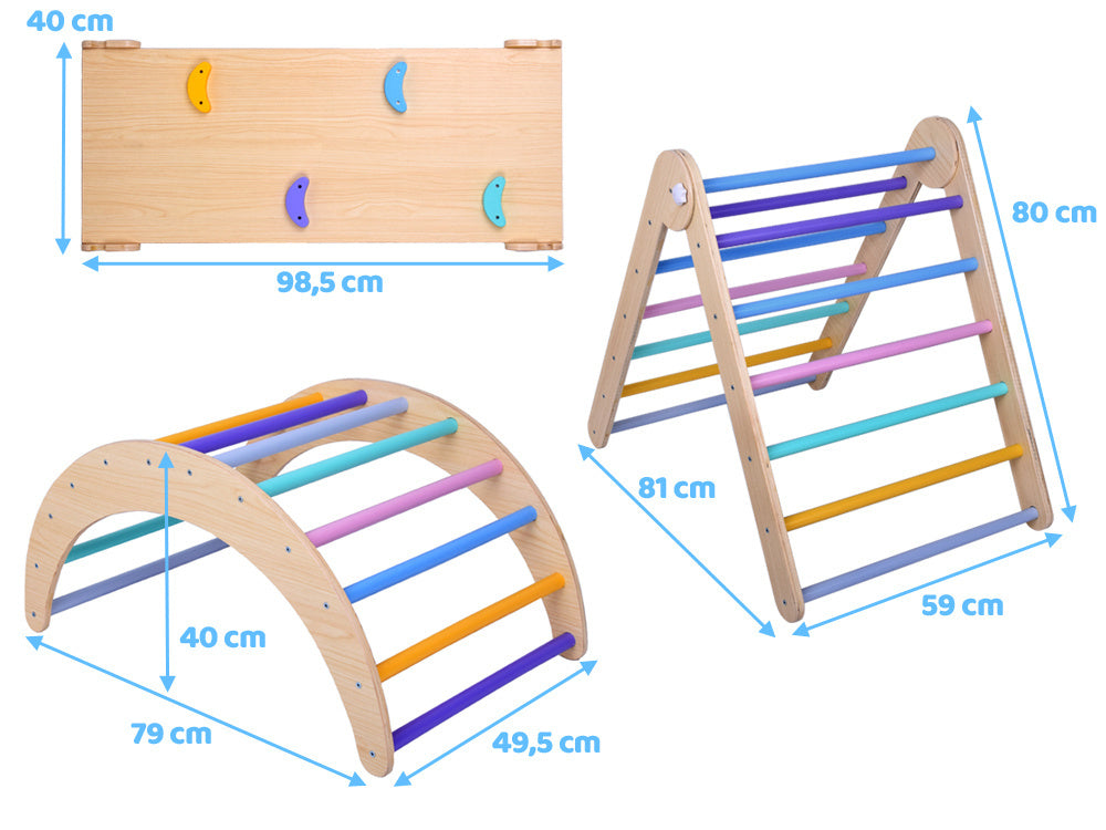 Montessori laipiojimo rinkinį sudaro laipiojimo trikampis, laipiojimo arka ir rampa. Kiekvieną elementą galima naudoti atskirai arba įvairiais deriniais, suteikiant vaikams neribotas kūrybinio žaidimo galimybes. Didelis vaikų žaidimų aikštelė yra ideali vieta, kur maži vaikai gali aktyviai leisti laiką, ugdyti fizinę formą, kūrybiškumą ir kurti gražius prisiminimus.