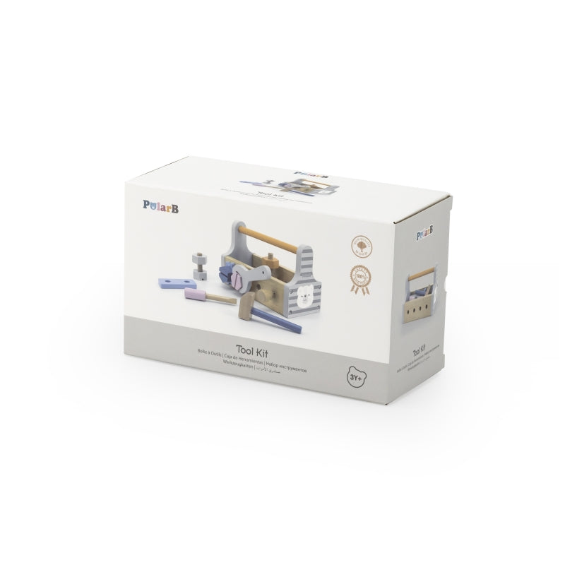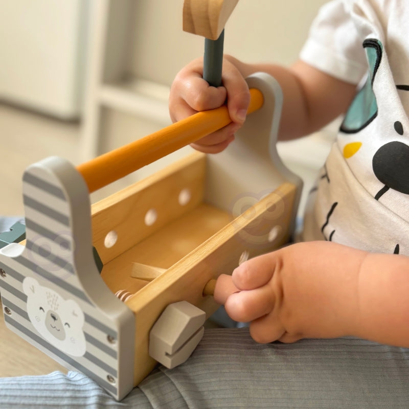 „Viga“ medinių įrankių rinkinys iš serijos „Polar Bear“ - įrankių rinkinys su baltojo lokio motyvu tikrai patiks mažiesiems amatininkams.