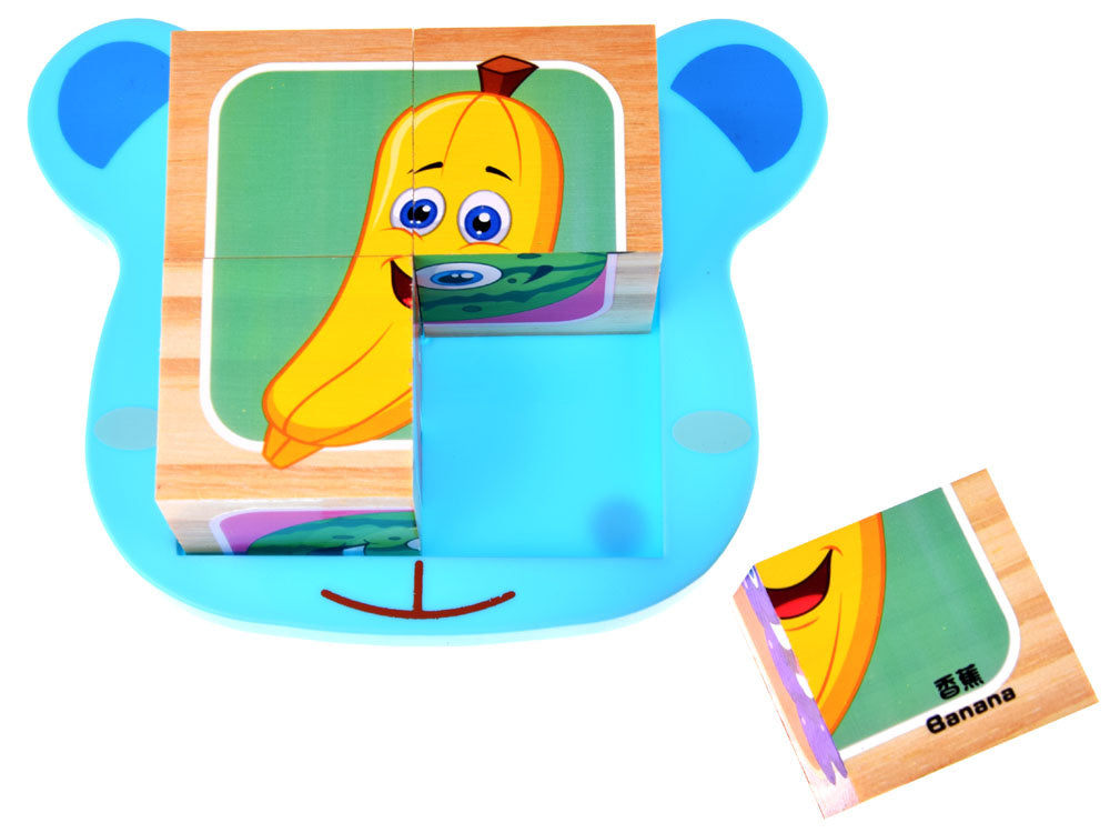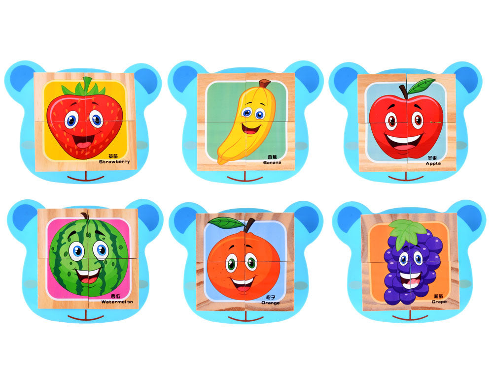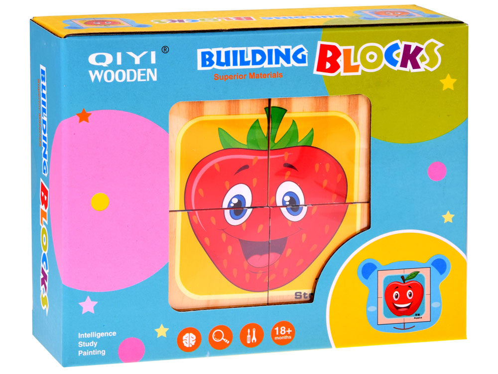 Medinių kaladėlių dėlionė 4 vnt, vaisiai