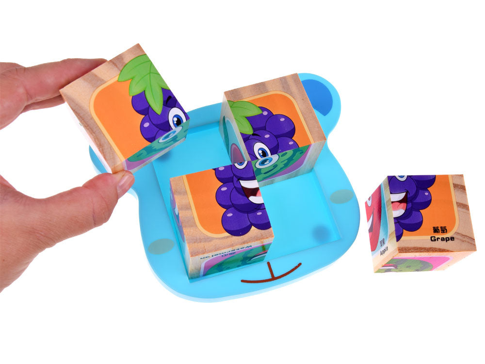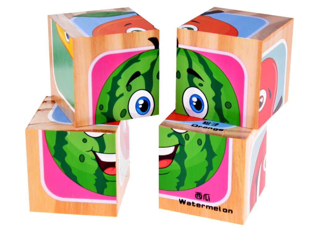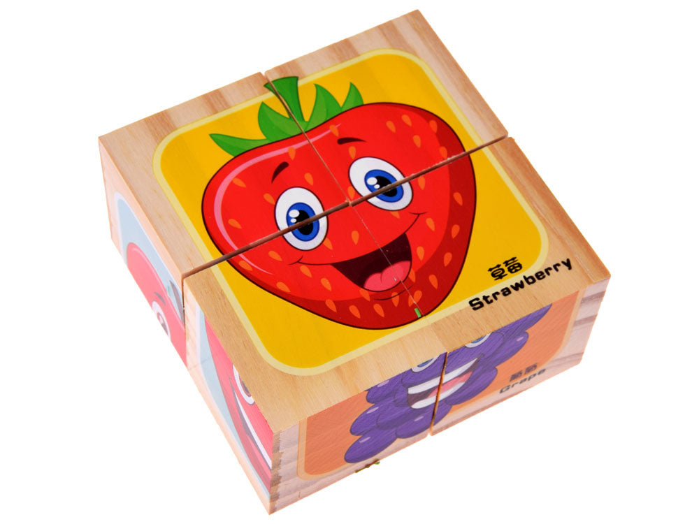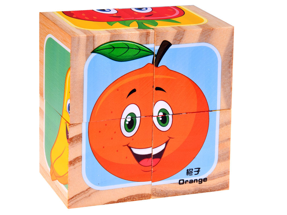 Medinės kaladėlės su vaisių paveikslėliais skirtos mažyliams, mėgstantiems lavinamuosius žaislus. Iš medinių kaladėlių su paveikslėliais galėsite sudėlioti paveikslėlius su skanaus vaisiaus atvaizdu. Vaiko užduotis - sudėlioti vaisiaus paveikslėlį, pritaikant tinkamą formą paveikslėlyje. Nebent mažylis nuspręs sukurti savo vaisių įvairovę, kuri bus, pavyzdžiui, braškė-apelsinas arba arbūzas-apelsinas. Jūsų vaikui tikriausiai nepritrūks idėjų. Spalvingos kaladėlės supakuotos į įspūdingą dėžutę, puikiai tinkančią dovanai.