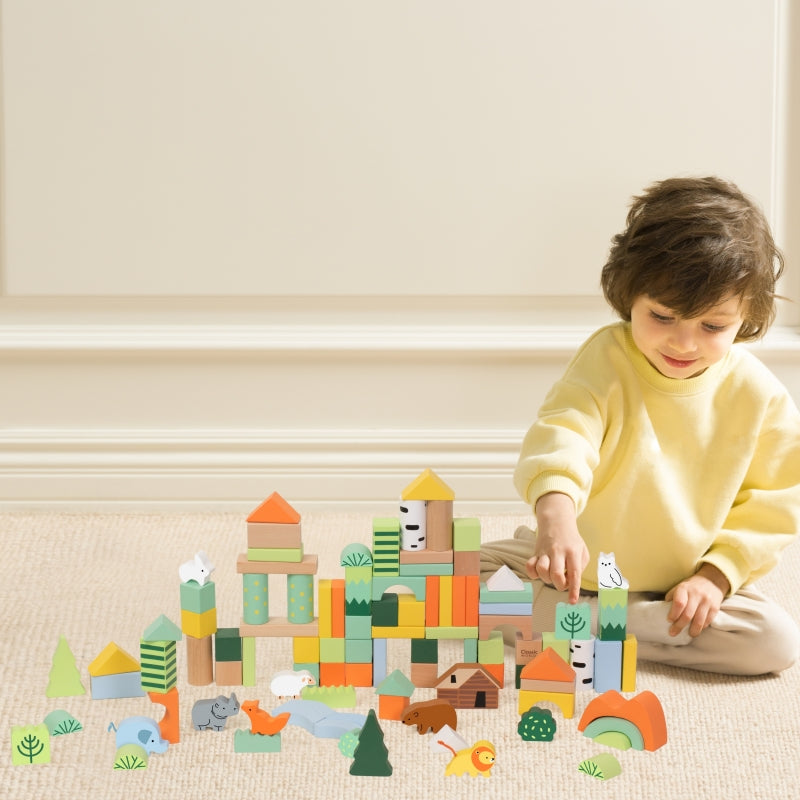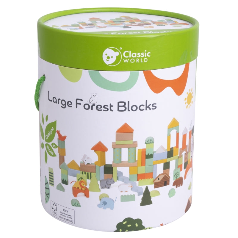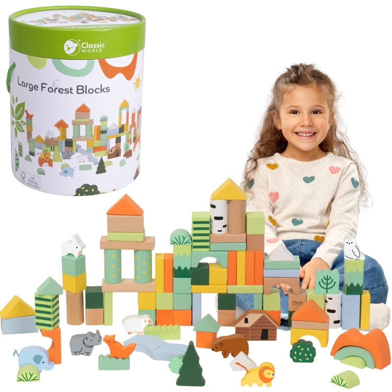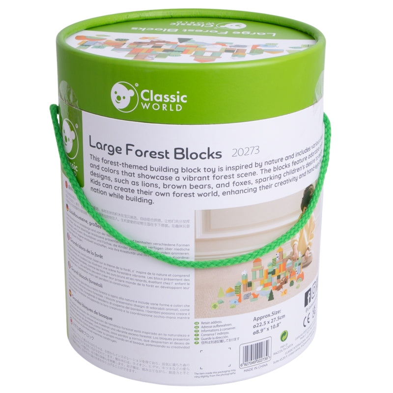 Classic World miško tematikos mediniai blokai – tai kūrybinis rinkinys, kuris perkelia vaikus į miško nuotykių pasaulį. Dėl įvairių formų ir spalvų mažyliai gali laisvai statyti savo konstrukcijas, ugdydami vaizduotę ir kūrybiškumą. Gyvūnų, medžių ir gamtos elementų motyvai skatina savarankišką ir bendrą žaidimą tiek namuose, tiek darželyje.