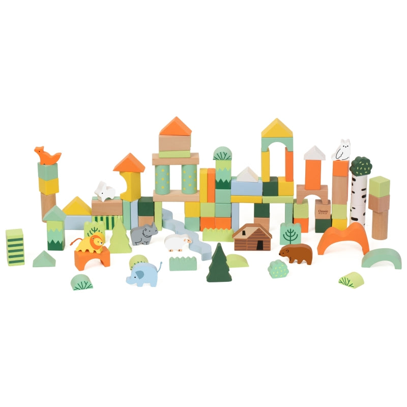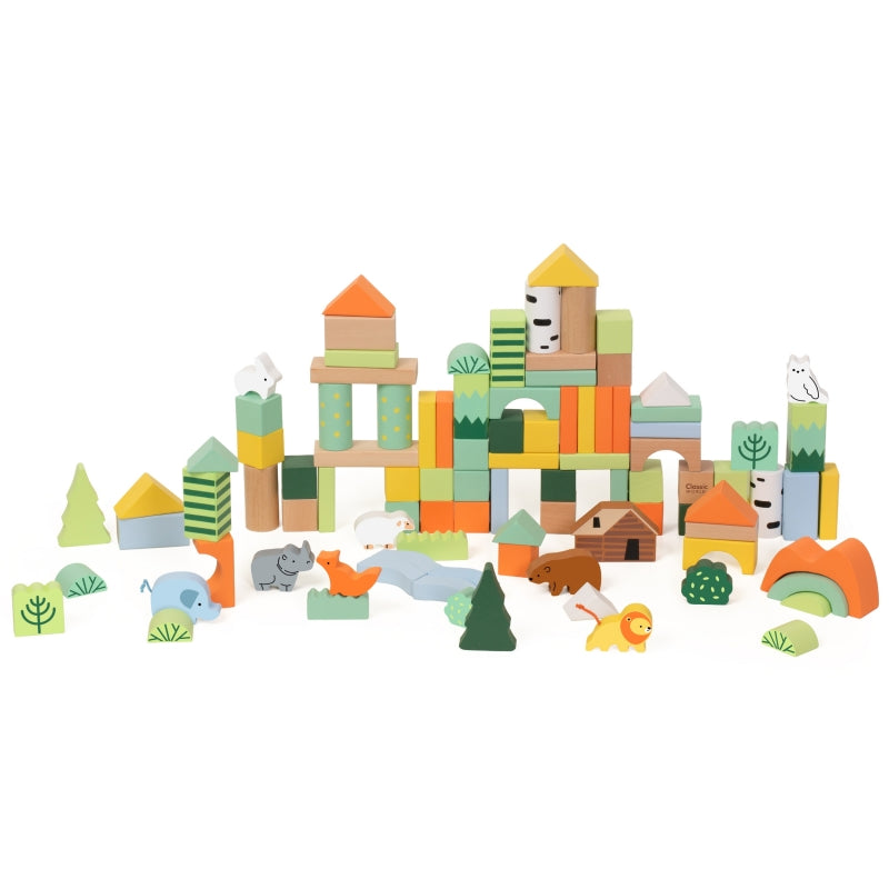 Medinių kaladėlių rinkinys “Miško pasaulis” 100 vnt., CLASSIC WORLD