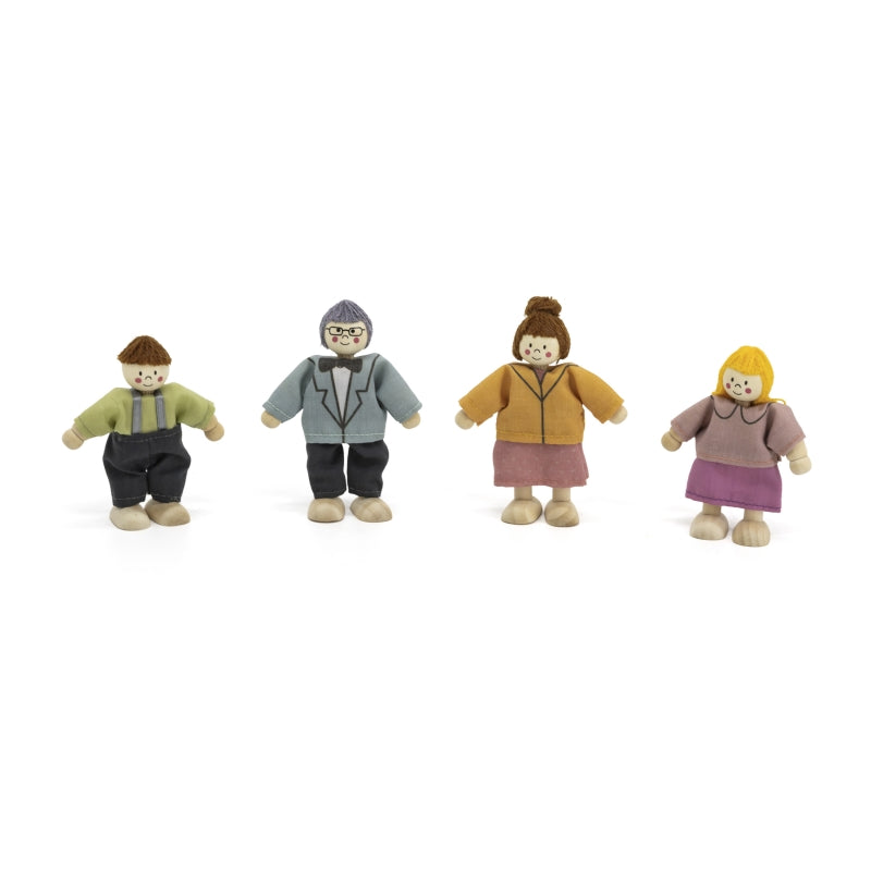 Medinių lėlių su medžiaginiais drabužiais rinkinys 4 vnt, VIGA