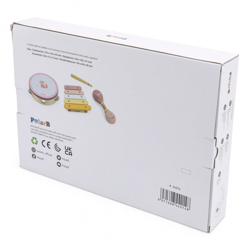 Žinomo prekės ženklo VIGA muzikos instrumentų rinkinys „PolarB“ serija - tai jūsų mažojo muzikanto hitas! Dabar jūsų vaikas galės lavinti ir rankų, ir klausos įgūdžius, be to, stiprins natūralų ritmo pojūtį. Tarp instrumentų rasite tamburiną, metalofoną ir dvigubus marakasus, kurie sužadins jūsų vaiko vaizduotę. Padovanokite savo vaikui aukščiausios kokybės ir nepamirštamų akimirkų, kupinų muzikos!