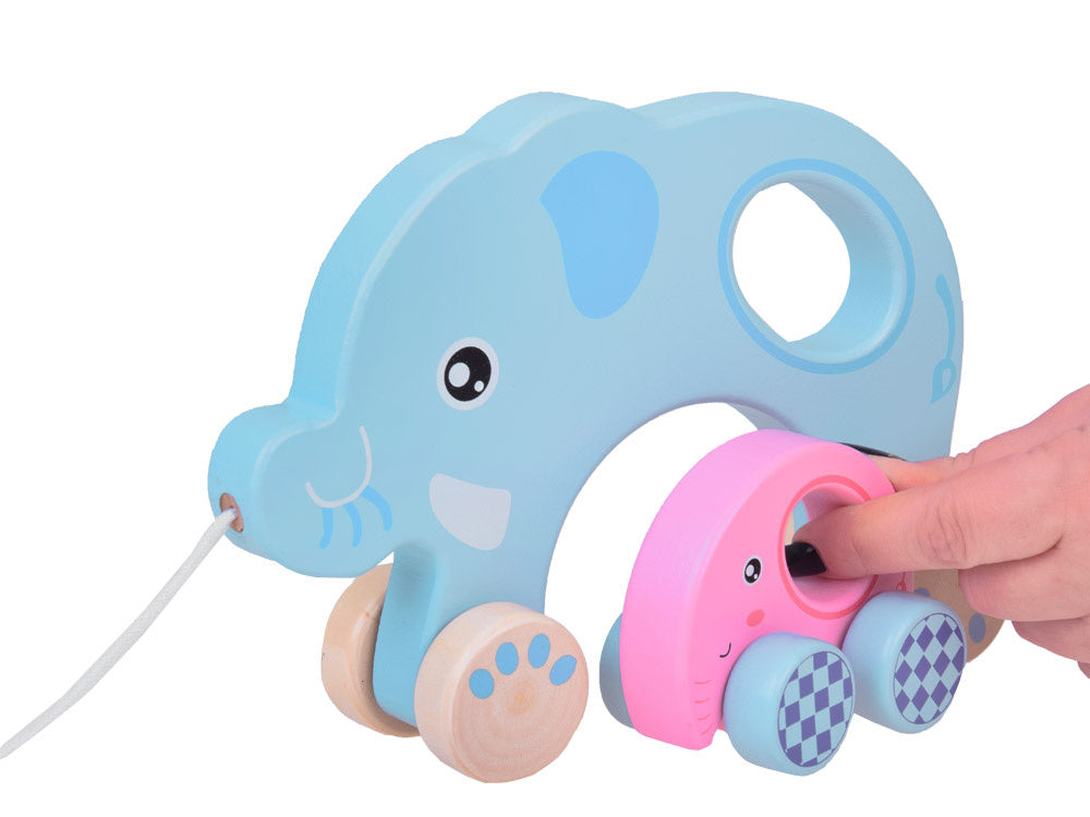 Medinių, traukiamų drambliukų šeima vaikams 2in1
