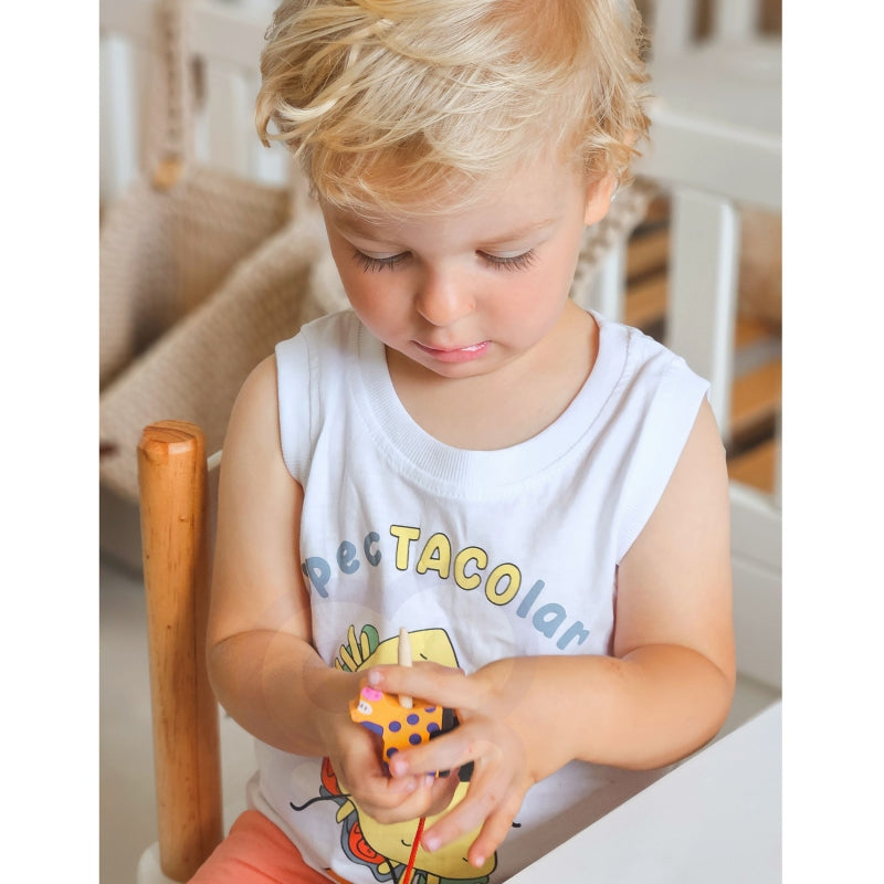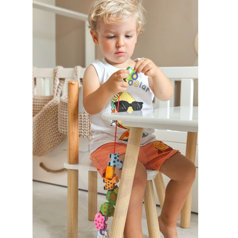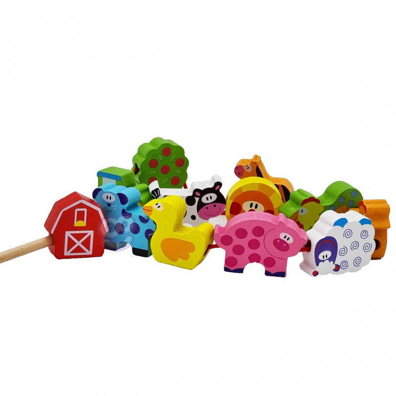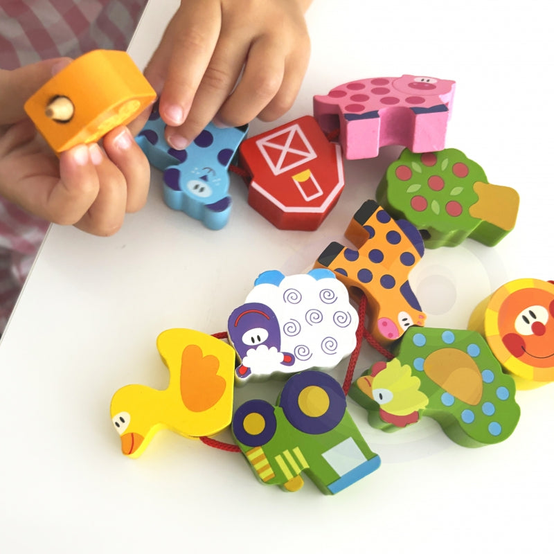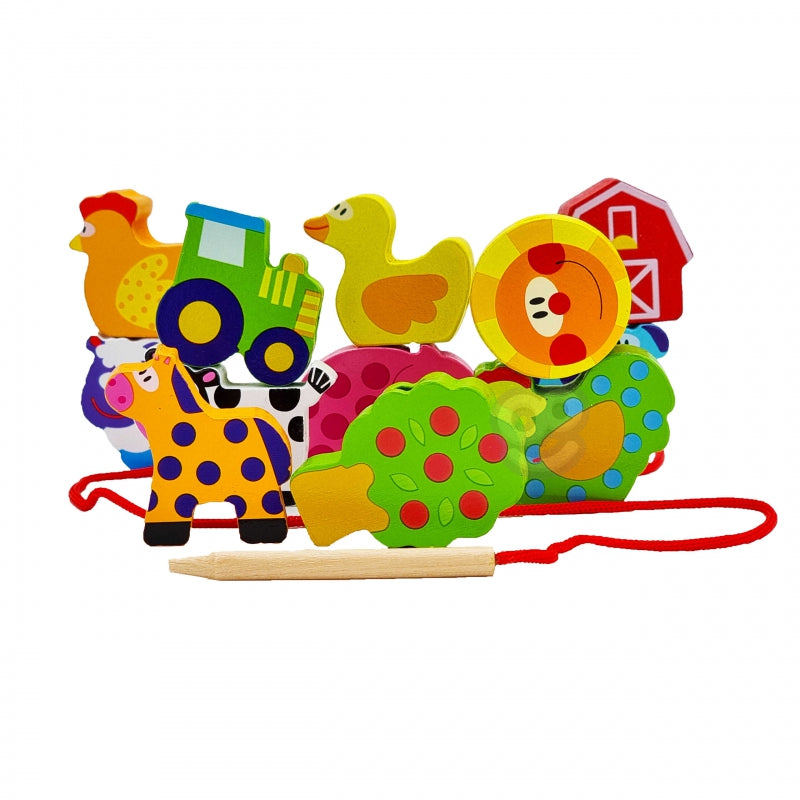 Medinių veriamų kaladėlių rinkinys padės vaikui mokantis spalvų ir atpažinti gyvūnus, bei bus puikus pagalbininkas smulkios motorikos vystymuisi. Skirtingi gyvūnai veriami ant virvelės.