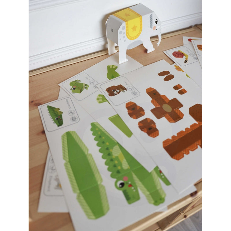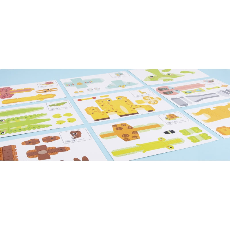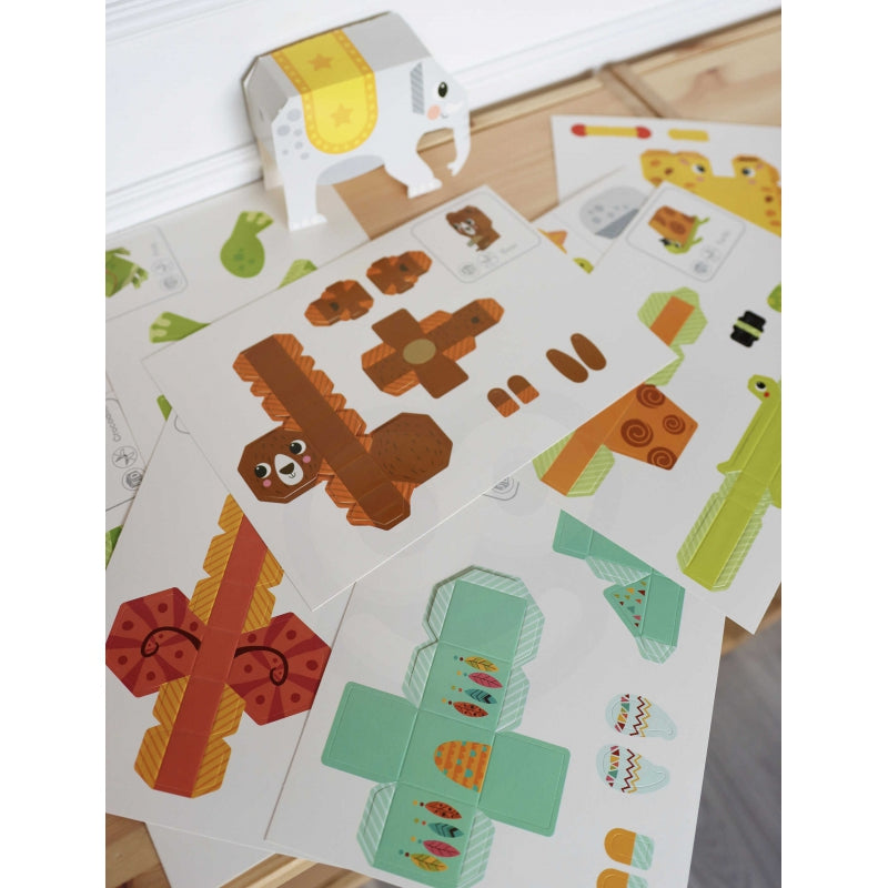 Naudodamasis šiuo meniniu popieriaus lankstymo rinkiniu vaikas gali sukurti 10 3D origami popierinių gyvūnų.Gyvūnus lengva pagaminti, tereikia šiek tiek vikrumo ir klijų. Nereikia žirklių, nes gabalėlius galima lengvai atskirti rankomis. Su žaislu galite papildomai paskatinti vaiką mokytis angliškų gyvūnų pavadinimų. Žaislas lavina vaiko rankų darbo įgūdžius, vadinamąją smulkiąją motoriką , koncentraciją, vaiko vaizduotę ir kūrybiškumą.