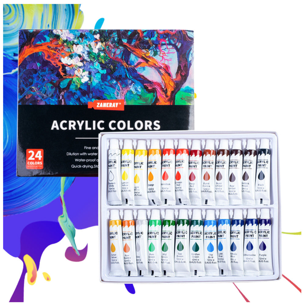Meninių akrilo dažų tūbelėse rinkinys 12 ml 24 vnt.