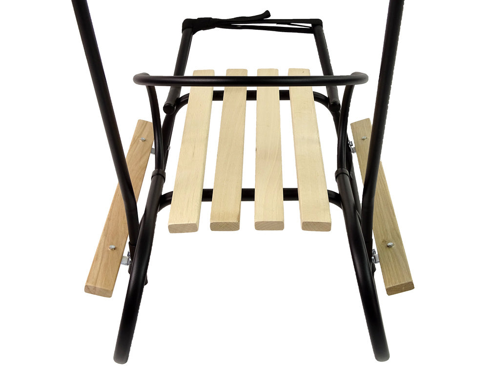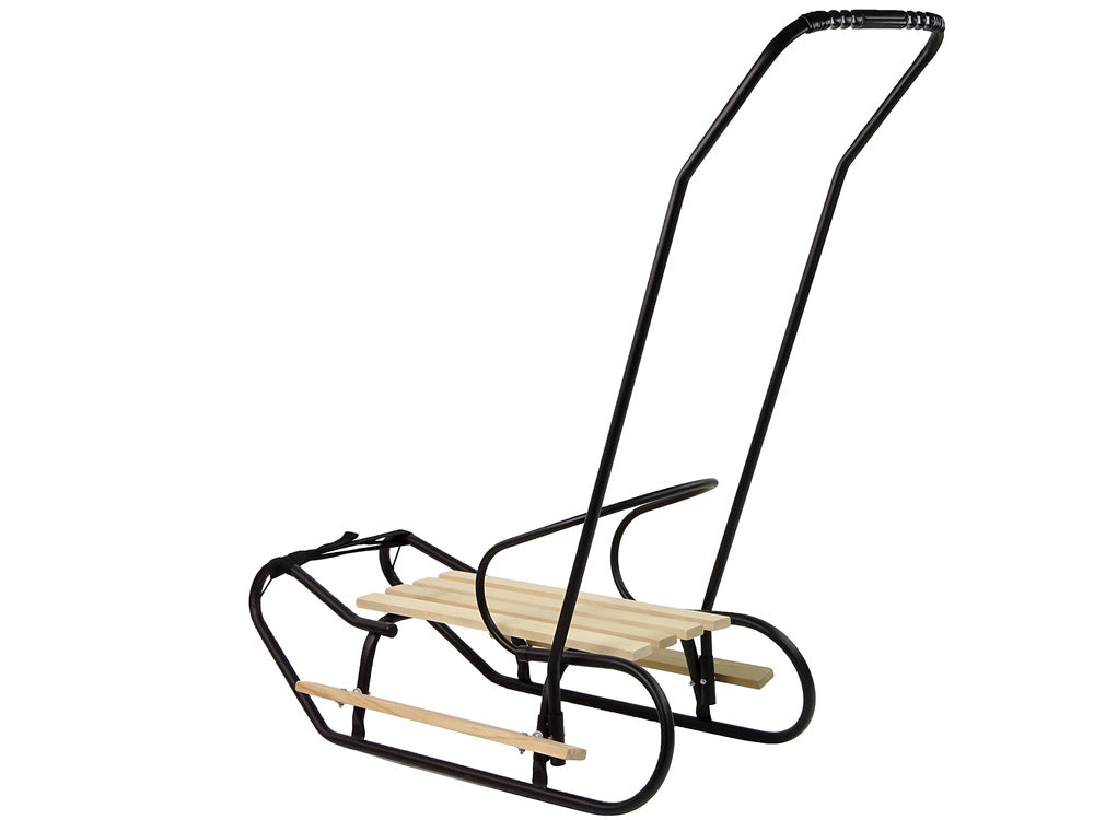 Metalinio rėmo rogės su atlošu ir stūmimo rankena, juodos