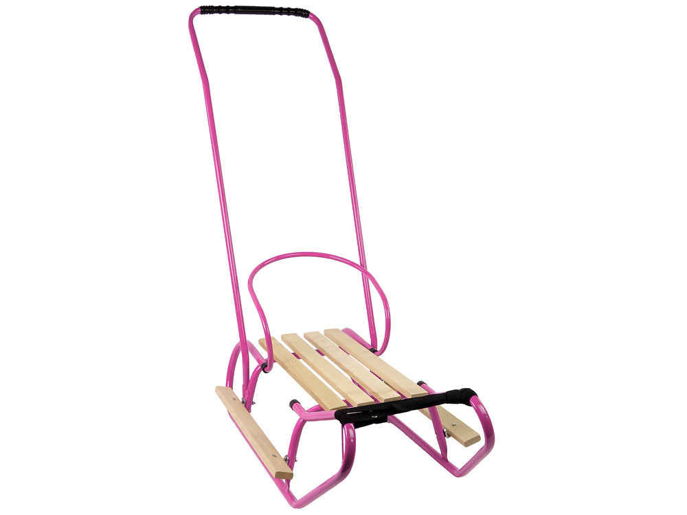 Metalinio rėmo rogės su atlošu ir stūmimo rankena, rožinės