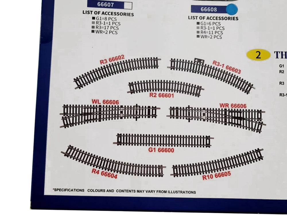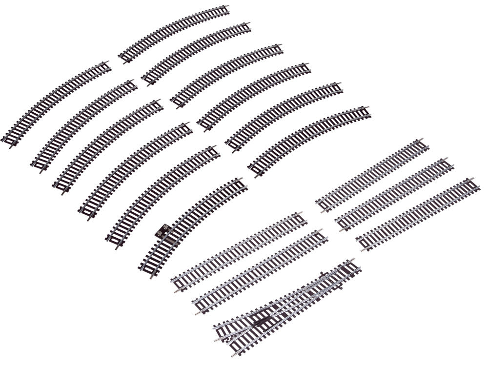 Pilnas rinkinys, leidžiantis sukurti savarankišką bėgių kelią arba išplėsti jau esamą. Rinkinys leidžia sukurti ovalo formos maršrutą su atšaka. Norėdami nukreipti traukinį į šalutinę geležinkelio liniją, tiesiog perstumkite perjungiklį atitinkama kryptimi. Visas maršrutas, kurį gali įveikti lokomotyvas, yra daugiau kaip 3 m!