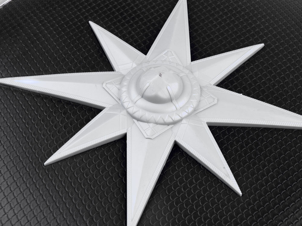 Zestaw w całości wykonany z giętkiego plastiku, bezpieczny. Zestaw bardzo ładnie i starannie wykonana z herbem ośmio ramiennej gwiazdy. Sklep Jokomisiada oferuje szeroki wybór zabawek dla małych rycerzy. Zabawka zapakowana na kartonowym opakowaniu.
