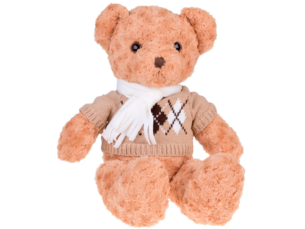 Žavus rudas pliušinis meškiukas yra puikus talismanas, kuris pradžiugins kiekvieną minkštų pliušinių žaislų mėgėją. Didelės rudos akys suteikia jam itin šiltą ir draugišką išraišką, o dėl minkštos medžiagos jį itin malonu liesti. Meškiukas aprengtas stilingu, elegantišku megztiniu ir kreminiu šaliku, kuris suteikia dar daugiau žavesio ir padaro jį pasiruošusį bet kokiems žiemos nuotykiams. Jis yra puikus žaidimų draugas, kuris taps ištikimu vaikų ir suaugusiųjų draugu. Puiki dovana bet kokia proga!