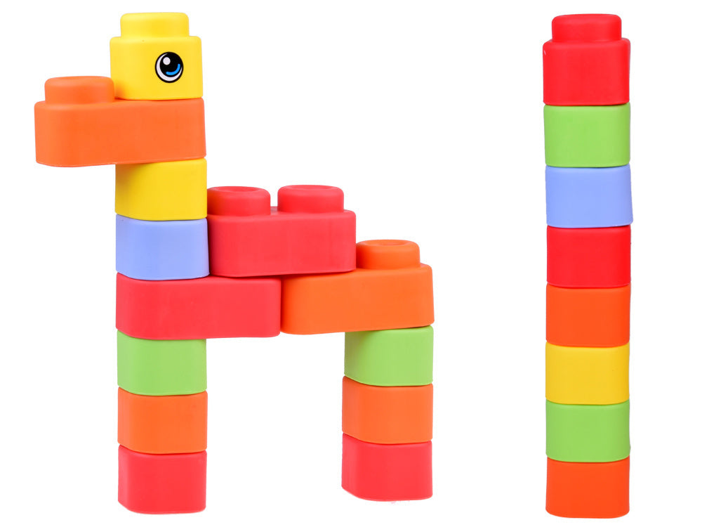 Minkšti guminiai spalvoti blokeliai - kūrybiškas žaislas jūsų vaikui! Atraskite begalinių žaidimų galimybių pasaulį su minkštomis spalvotomis kaladėlėmis! Šios unikalios kaladėlės buvo sukurtos atsižvelgiant į vaikus ir užtikrina saugią ir kūrybišką pramogą. Žaisdami su jomis mažyliai stimuliuoja rankų ir akių koordinaciją ir skatina jutimų vystymąsi, todėl gali saugiai kurti bet kokius norimus statinius.