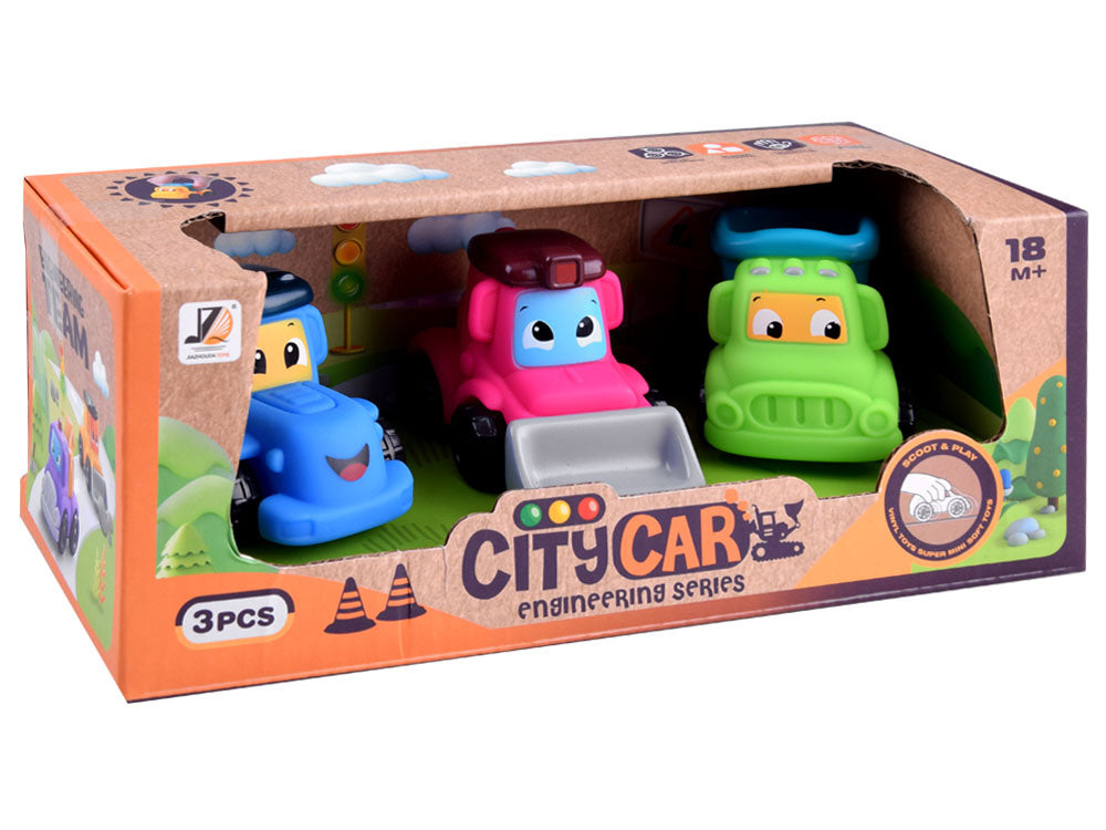 3 minkštų automobilių rinkinys leis smagiai ir saugiai pramogauti vaikams nuo 18 mėnesių amžiaus. Visi automobiliai pagaminti labai kruopščiai, akį džiuginančių spalvų. Dėmesį patraukia draugiški, besišypsantys veidai, kurie skatina linksmintis. Rinkinys supakuotas į spalvingą, atvirą dėžutę, puikiai tinkančią dovanai.