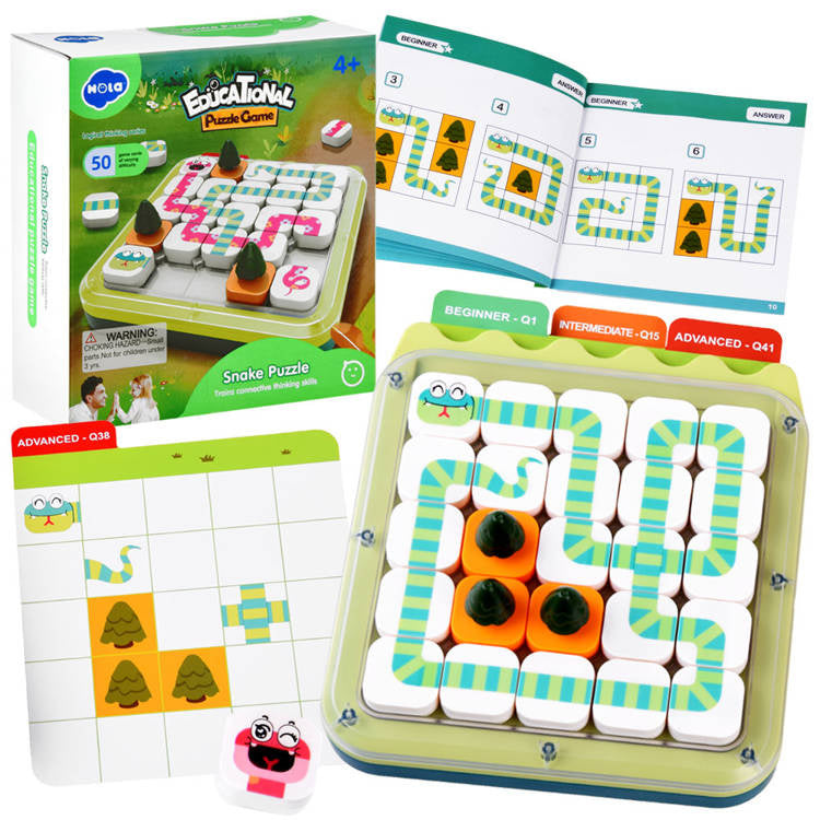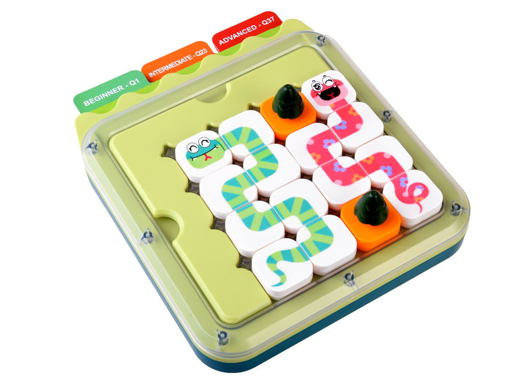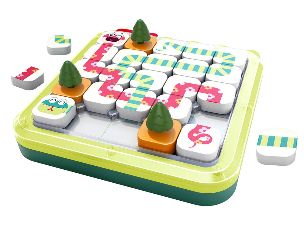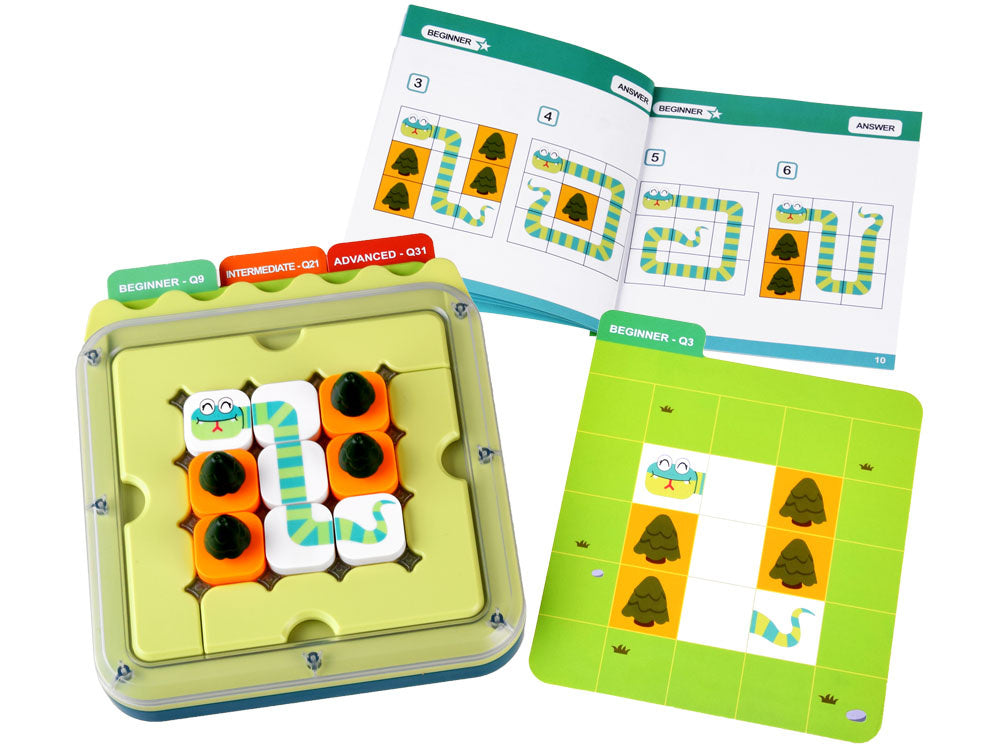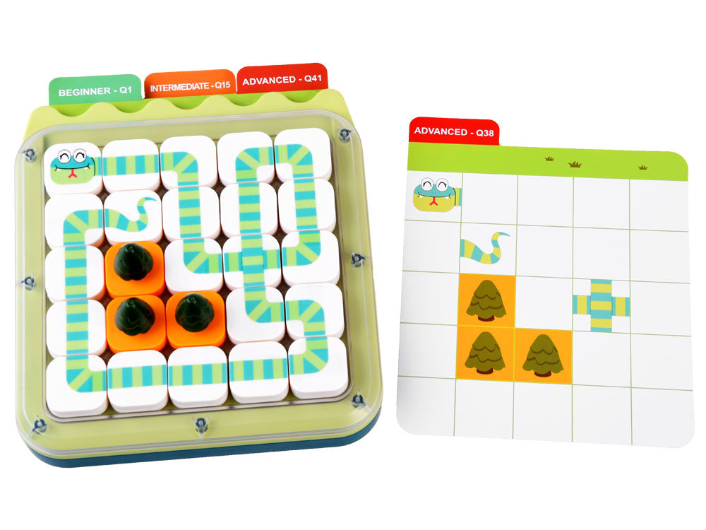 Pasirenkame kortelę su užduotimi. Galima rinktis iš 3 sudėtingumo lygių: lengvas (žalias), vidutinis (oranžinis) ir sunkus (raudonas). Lengvame ir vidutiniame lygyje žaidimo lauką sumažiname išdėstydami ribotuvus. Taip pat išardome medžius, gyvatės galvą ir uodegą, o sunkiausiame lygyje - ir papildomus gyvatės elementus, kuriuos reikės sujungti. Mūsų užduotis - sujungti gyvatės galvą ir uodegą į vieną visumą. Žaidimo metu negalima judinti ar šalinti jokių kortelėje nurodytų elementų. Taip pat negalima maišyti spalvų - gyvatė turi būti visiškai žalia arba rožinė. Svarbu! Užduotis laikoma teisingai išspręsta, kai sujungiame gyvatę į vieną visumą ir visus laukus užima kubeliai arba medžiai.