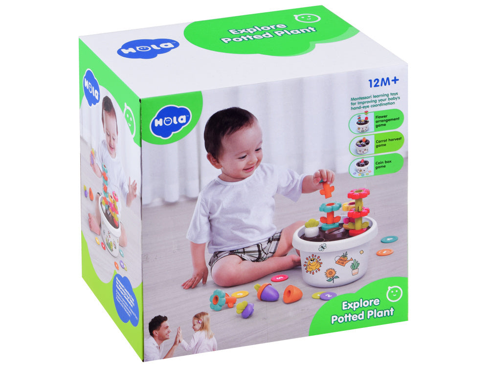 Mokomasis sodininko rinkinys "Hola" skirtas patiems mažiausiems vaikams, kurie dar tik pradeda pažinti juos supantį pasaulį. Rinkinys turi daug funkcijų, kurios teigiamai paveiks vaiko motorinius įgūdžius, o spalvos ir formos sužadins jo smalsumą. Vaikams bus smagu žaisti mažąjį sodininką. Jie galės savo nuožiūra sodinti ir skinti morkas, taip pat statyti gėlių bokštus.