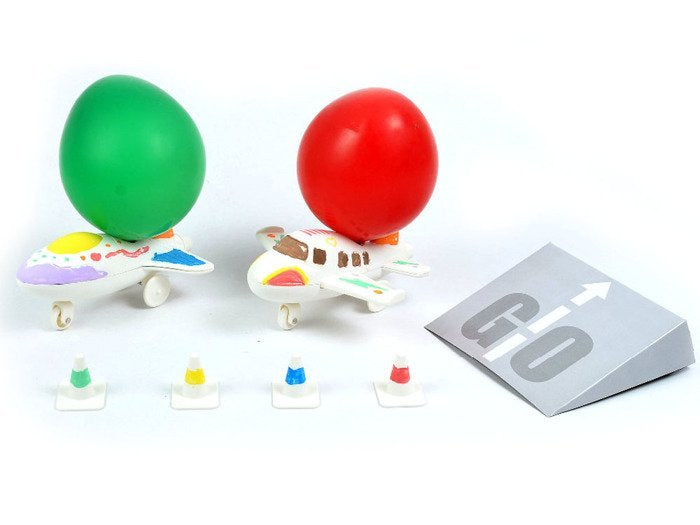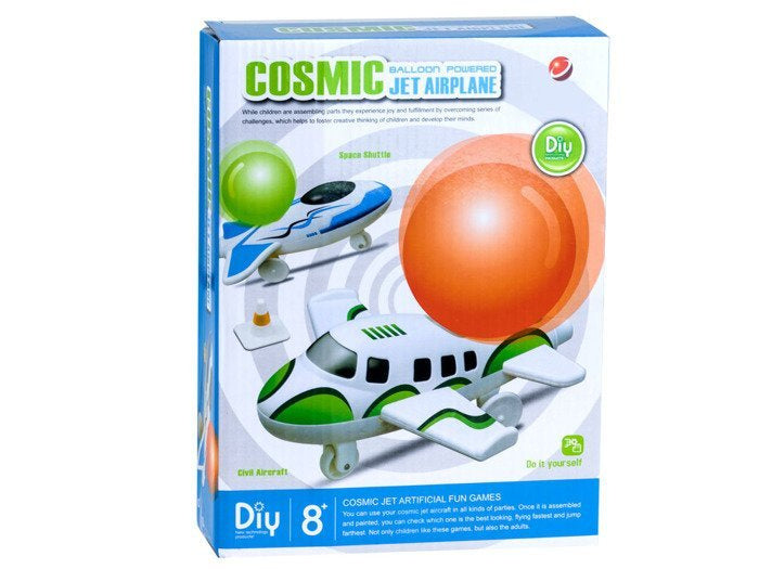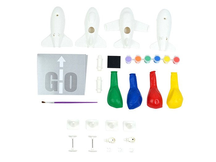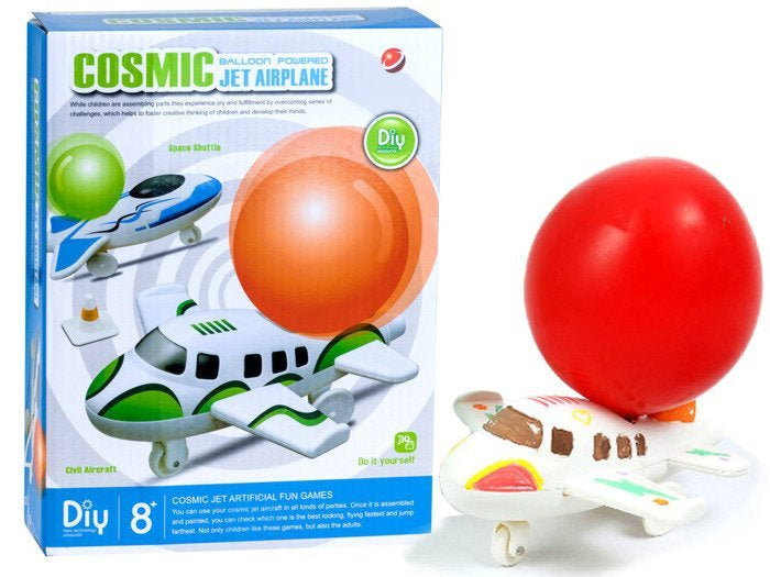 Įsivaizduokite, kad pakilimo taku leidžiatės balionais varomu lėktuvu! Šis reaktyvivinis lėktuvas tikrai sužadins vaiko vaizduotę, nes jis skrenda balionų jėga! Būsimam inžinieriui patiks konstruoti lėktuvą ir su juo eksperimentuoti! Balionų varomas reaktyvinis lėktuvas yra ne tik įdomus, bet ir puiki mokomoji priemonė, kuria tėvai ir pedagogai gali padėti vaikams! Pirmiausia vaikas gali pasinaudoti paprasta ir lengvai suprantama instrukcija ir surinkti bei nudažyti lėktuvo modelį be didesnio suaugusiųjų įsikišimo. Tada jie gali pradėti mokytis, kaip panaudoti balionus reaktyviniam lėktuvui maitinti! Mokomasis rinkinys, supakuotas į kartoninę pakuotę.