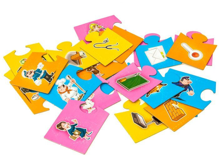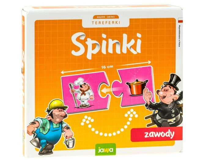 SPINKI profesijų žaidimas yra ideali dėlionė kiekvienam ikimokyklinukui. Jame puikiai dera mokymasis ir pramoga. Siedami atskiras detales, vaikai dėlionės gabalėlius derina tarpusavyje. Žaidime reikia sujungti profesiją vaizduojančią dėlionę su dėlione, kurioje pavaizduotas tą profesiją atitinkantis daiktas, pavyzdžiui, virėjas su puodu.