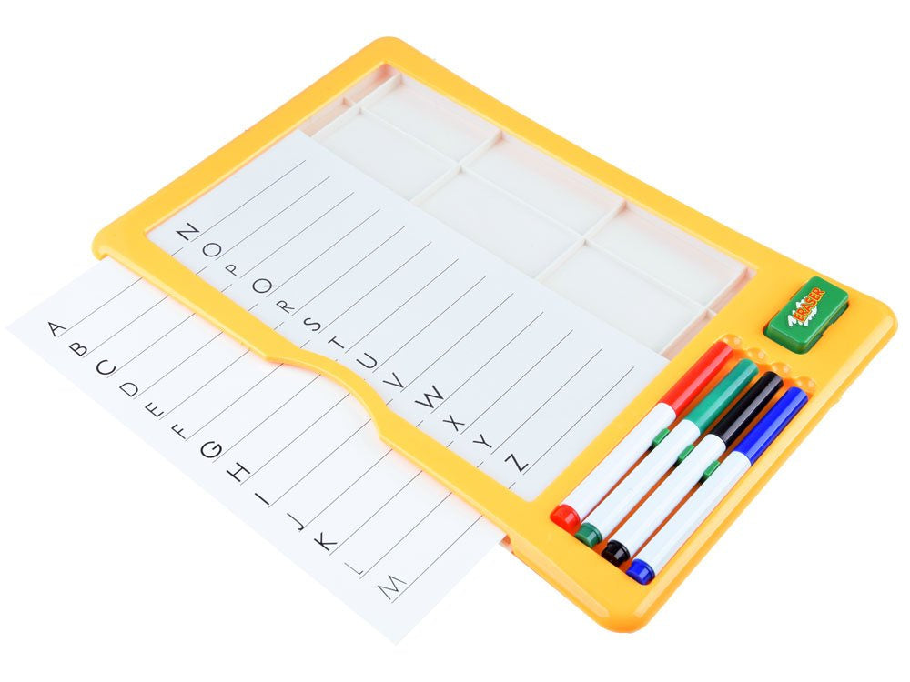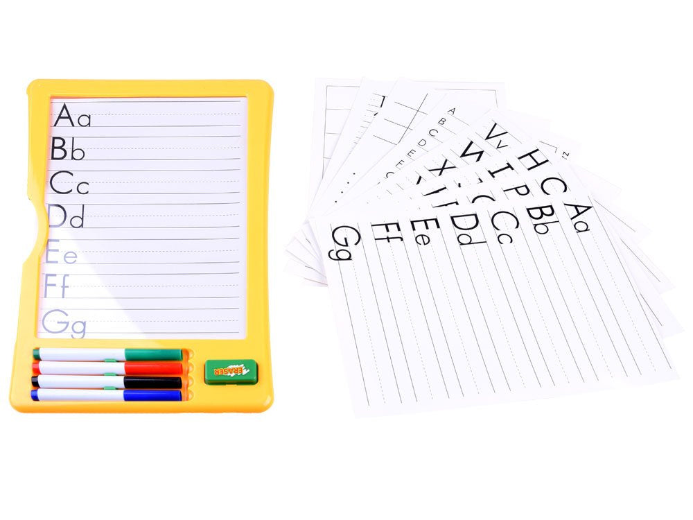 Ar jūsų vaikas nuobodžiauja, kai atsisėda mokytis? Ieškote idėjos, kaip įdomiai ir patraukliai supažindinti jį su raidžių, skaičių ar loginių galvosūkių pasauliu. Turime pasiūlymą, kaip lengvai išmokti rašyti - sausuoju būdu trinamą lentą su paruoštomis lentelėmis su raidėmis. Lentoje yra kortelės su užrašyta abėcėle, kurios dedamos į lentos vidų, raidės matomos dėl skaidraus paviršiaus. Jums tikrai bus lengviau įtikinti vaiką piešti raštus ir modelius, kai tai bus lengva ir smagu.