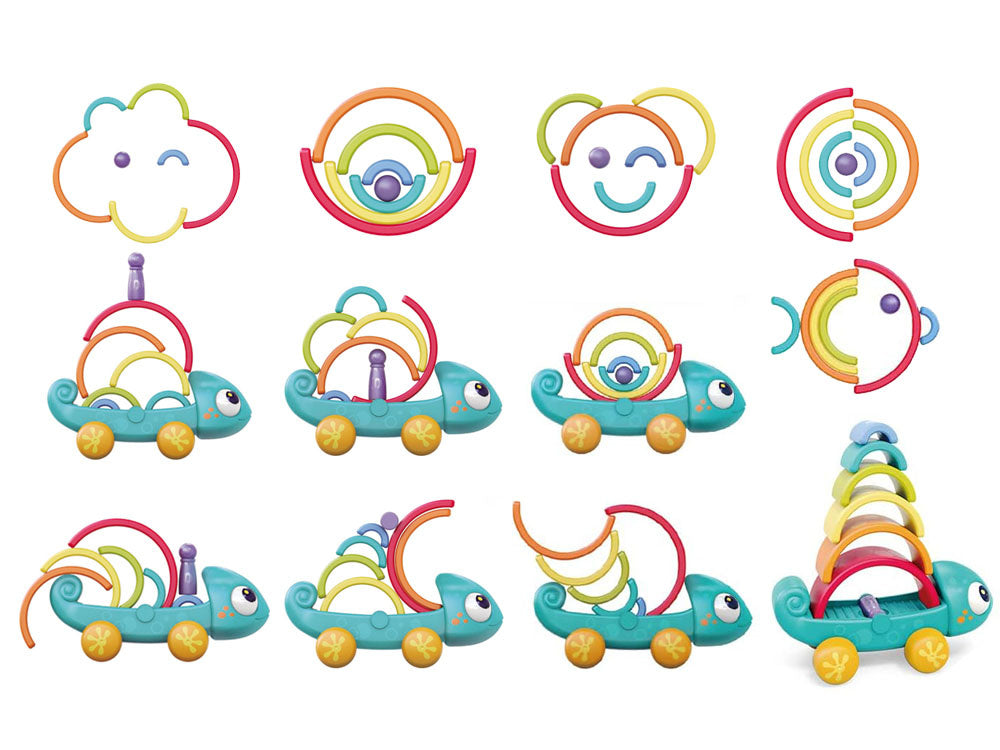 Vaivorykštės chameleonas sukonstruotas taip, kad vaiko vystymasis vyktų įvairiais lygmenimis. Žaislą galima žaisti įvairiais būdais, dėl to jis labai skatina vaiką ir jis tikrai nenuobodžiaus. Žaisdamas su chameleonu vaikas turi galimybę lavinti smulkiąją motoriką, erdvinę vaizduotę, atskirti spalvas, taip pat skirtumus ir ieškoti skirtumų. Rinkinys pateikiamas spalvingoje, estetiškoje dėžutėje, puikiai tinkančioje dovanai.