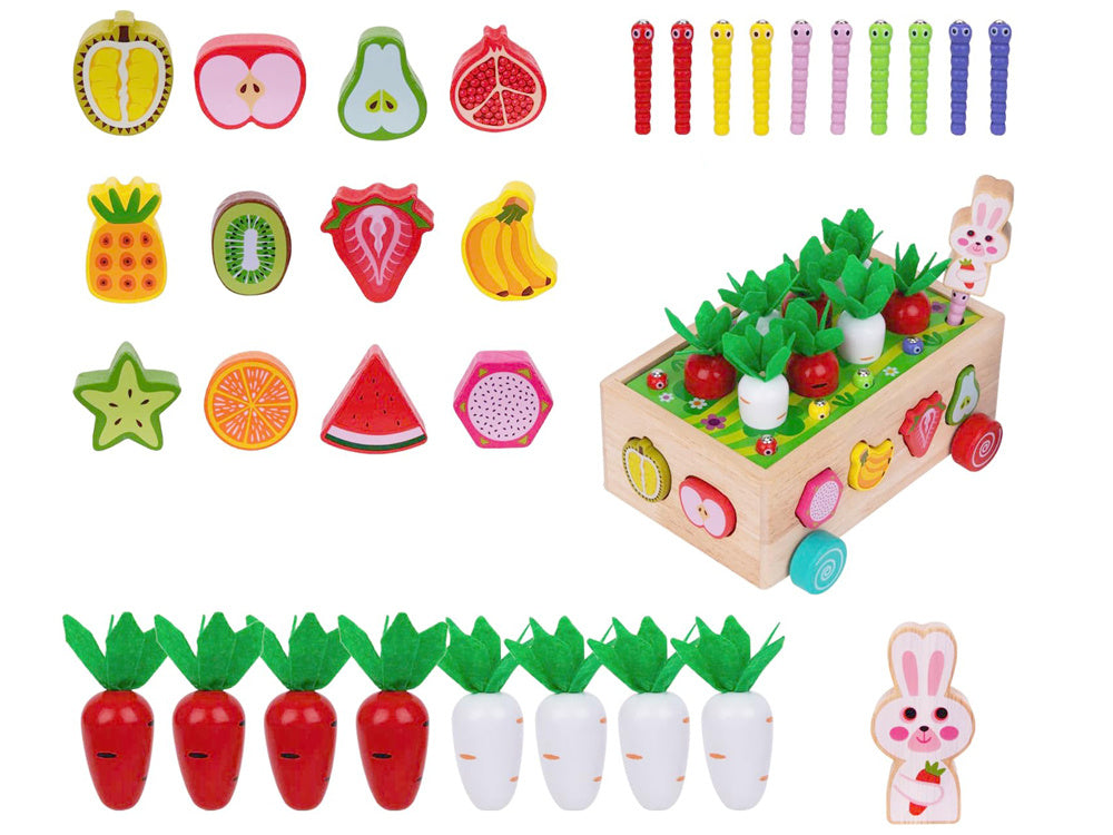 Šis medinis vežimėlis tikrai atitiks jūsų lūkesčius! Vaikams patraukli grafika su pieva ir mielais kirminais skatina vaiką žaisti. Žaislas gali būti naudojamas įvairiais būdais, padėdamas ugdyti motorinius, pažintinius, sensorinius ir socialinius įgūdžius.