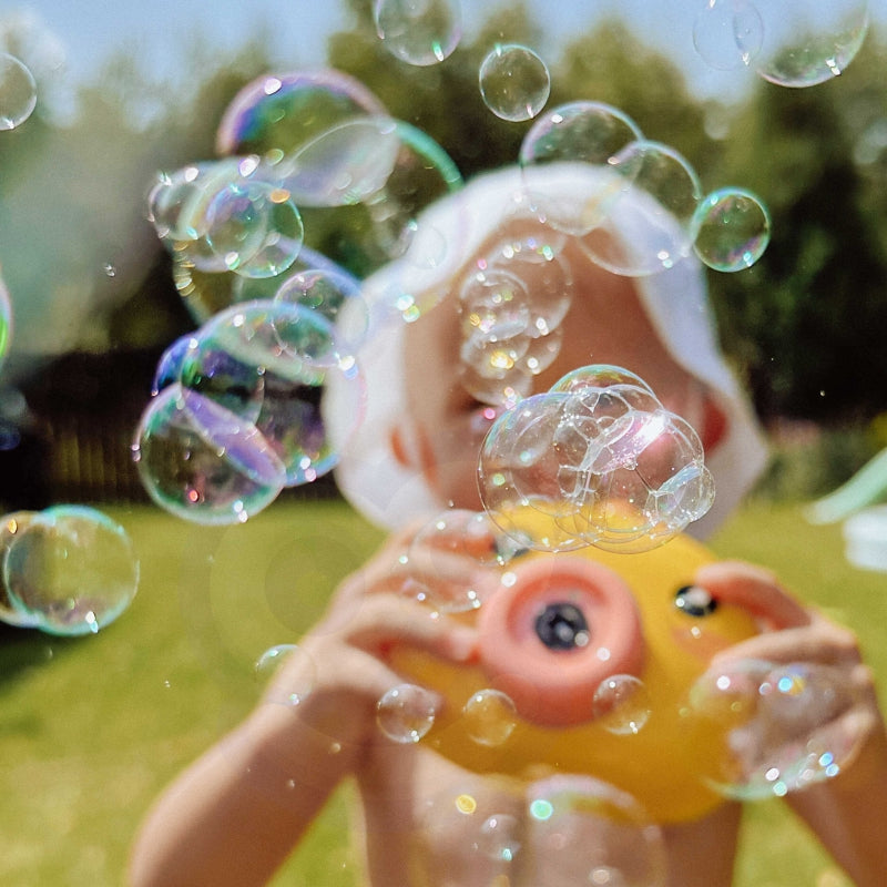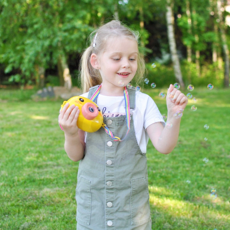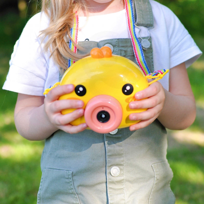 Viščiuko formos "Woopie" burbulų mašina yra puikus žaislas vaikams. Paleisdamas burbulus viščiukas groja malonią melodiją, todėl žaidimas tampa dar malonesnis. Išleidžiami burbuliukai ne tik šaudomi labai dažnai, bet papildomai įrengtas vėjo malūnėlis pučia juos dar toliau.