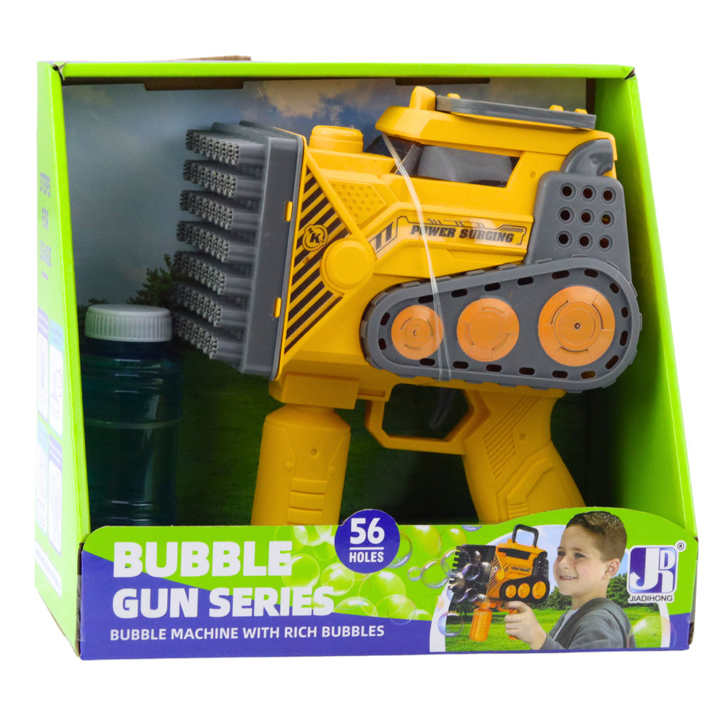 Originalios konstrukcijos muilo burbulų pistoletas yra puikus pasirinkimas kūrybingoms ir linksmoms linksmybėms lauke ir namuose. Gaminys pasižymi moderniu dizainu, primenančiu statybinę mašiną, ir net 56 angomis, pro kurias vienu metu pučiama dešimtys burbulų, taip sukuriant įspūdingą efektą. Tai idealus žaislas vaikams, mėgstantiems aktyvų ir jutiminį žaidimą.