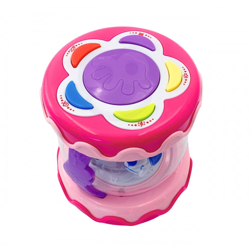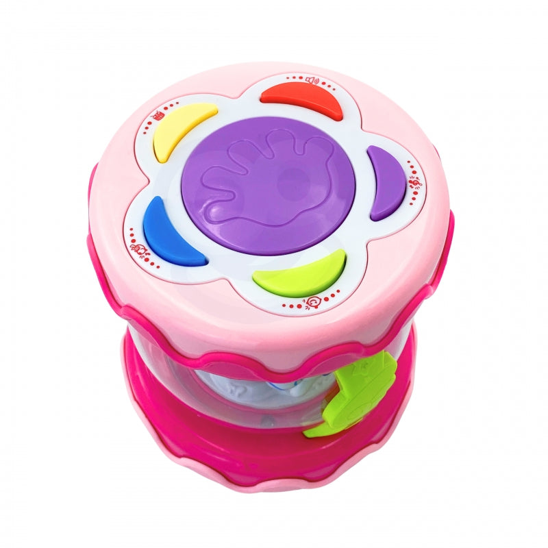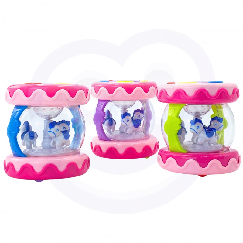 WOOPIE muzikinis būgnelis su šviesomis yra žaislas, kurio reikia kiekvienam vaikui. Žaislas daugiausia skirtas pojūčiams lavinti. Žaislas taip pat veikia kaip muzikinė dėžutė su viduje besisukančiais arkliukais. Grojant melodijai žybsi lemputės. Naktį žaislas veikia kaip projektorius - švieselės šviečia ir imituoja žvaigždes.