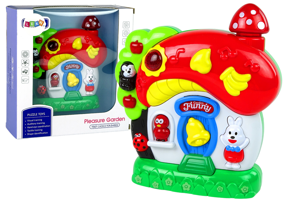 Interaktyvūs žaislai skatina jūsų vaiko vystymąsi ir leidžia tyrinėti jį supantį pasaulį. Žaidimų namelis suteiks jūsų vaikui daug džiaugsmo ir išlaikys jo dėmesį valandų valandas. Tai neleidžia atsirasti nuoboduliui ir lavina regos bei klausos pojūtį.