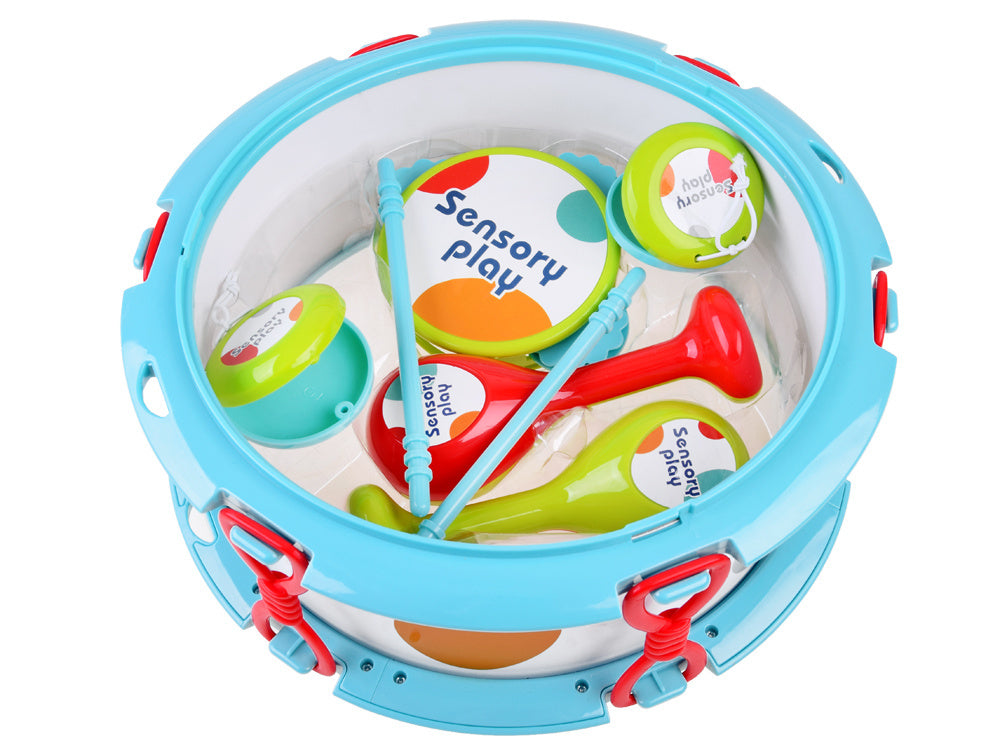 Instrumentų rinkinys - puikus pasiūlymas muzikaliems vaikams. Grojant muzikai susipažįstama su įvairiais instrumentais, lavinama klausa, taip pat gerinama kūno koordinacija ir ritmika. Rinkinys pravers muzikuojant šeimoje, taip pat vaikui atliekant solinius pasirodymus. Pasibaigus žaidimui, visus elementus galima paslėpti būgno viduje, todėl jie neužima daug vietos.