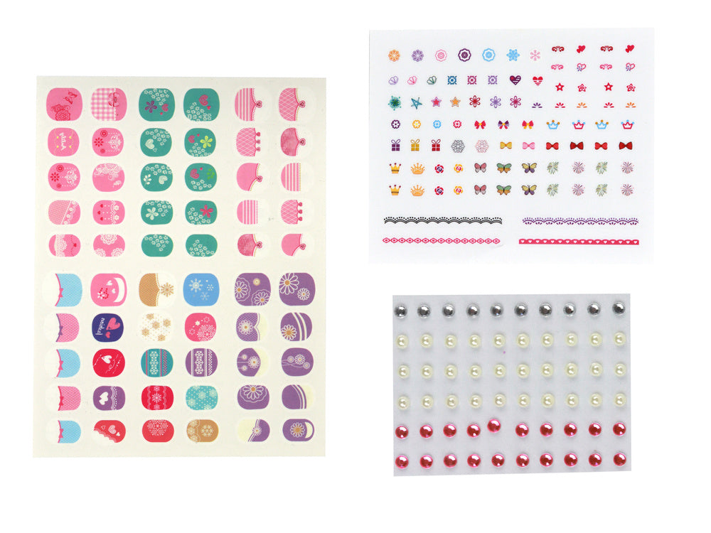 Nagų dailės rinkinys su lipdukais ir deimantais