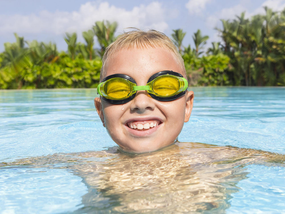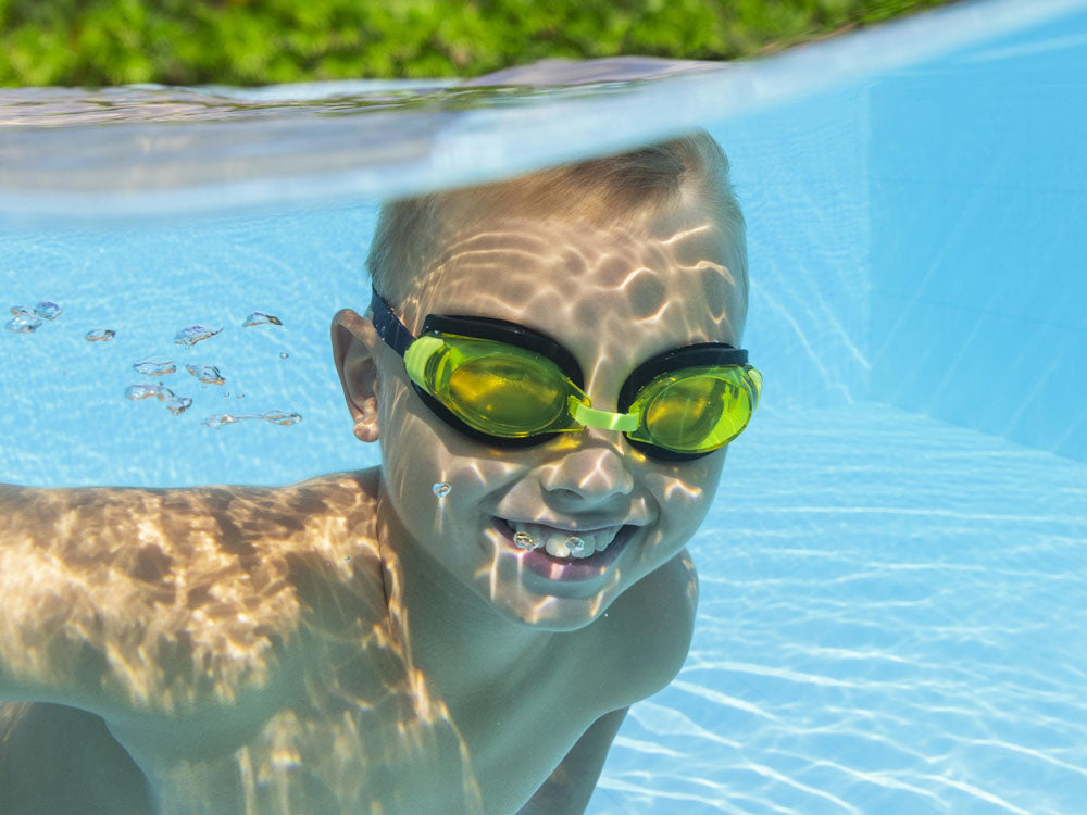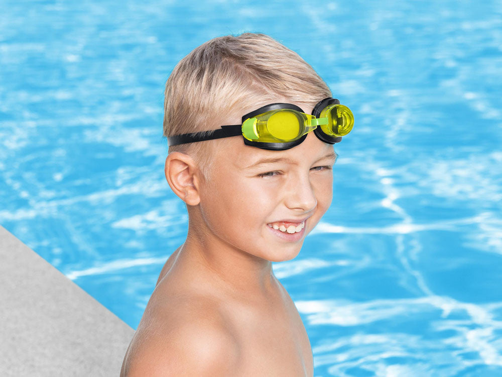 „Bestway“ plaukimo akinukai yra puikus pasirinkimas vaikams, kurie nori mėgautis patogiu ir saugiu plaukimu. Dėl reguliuojamo dirželio ir ergonomiško dizaino jie puikiai tinka įvairioms veido formoms. Akiniai užtikrina apsaugą nuo vandens ir UV spindulių, o tamsinti, smūgiams atsparūs lęšiai pagerina matomumą, apsaugo akis nuo saulės ir akinimo.