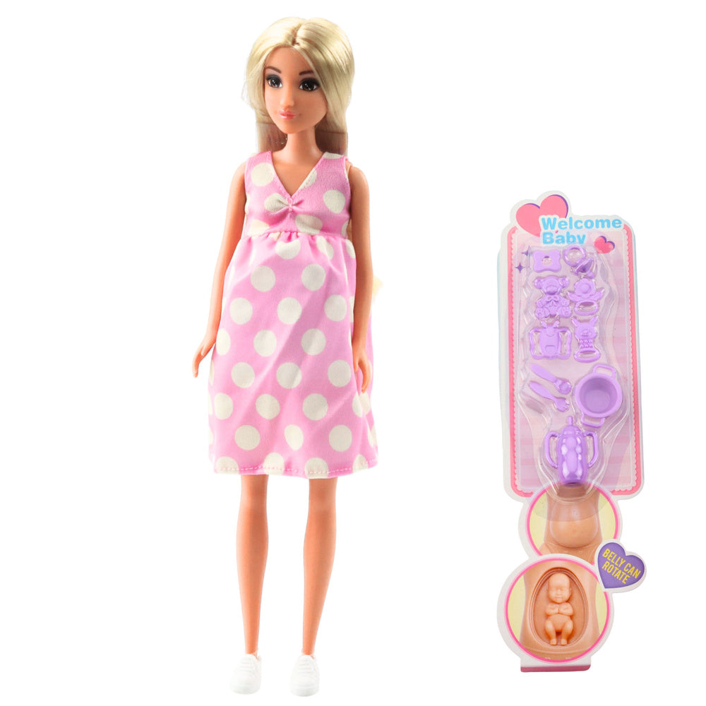 Nėščia lėlė Anlily su rožinė suknele, kūdikiu ir priedais